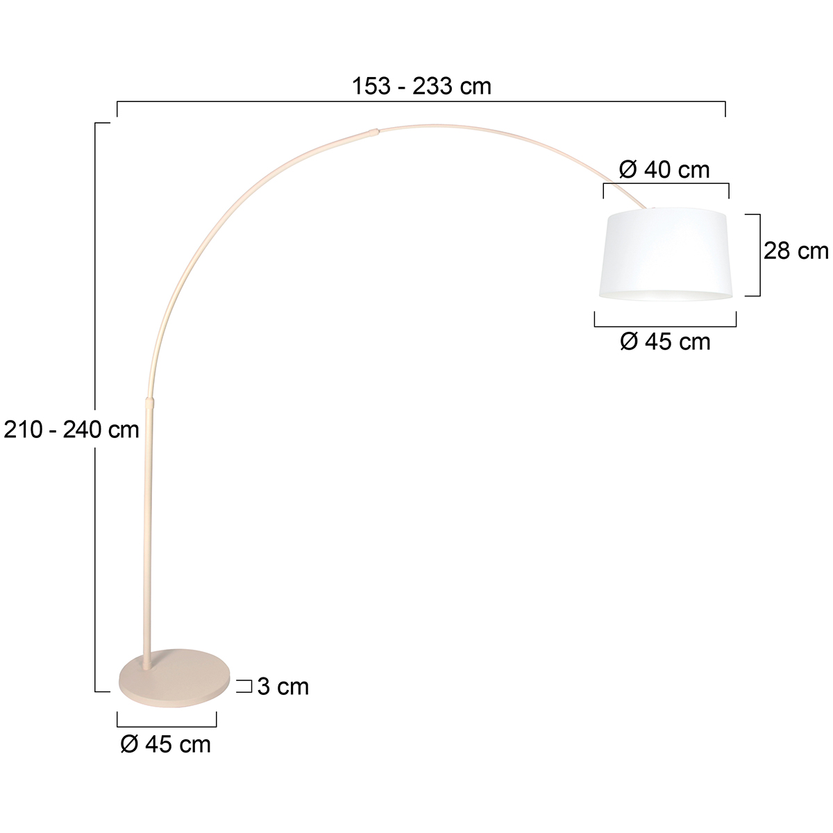 Diese Design-Bogenlampe in Beige ist ein raffinierter Blickfang mit einem ruhigen, modernen Erscheinungsbild. Die Kombination aus einem groben Leinen-Schirm und einem schicken Metallgestell in Cremetönen macht die Lampe sowohl warm als auch elegant. Dank der verstellbaren Höhe und der neigbaren Fassung bleibt der Schirm immer gerade und funktional ausgerichtet.