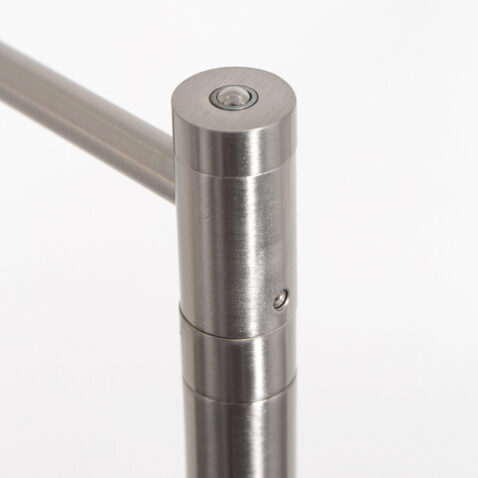 Die Retina-Stehlampe aus Stahl ist eine stilvolle Ergänzung zu modernen Interieurs. Mit einem austauschbaren 10 Watt LED-Modul und einer Lichtausbeute von 1000 Lumen bietet diese Lampe sowohl funktionales als auch stimmungsvolles Licht. Die Dim-to-Warm-Funktion ermöglicht es, die Farbtemperatur zwischen 2200 und 4000 Kelvin einzustellen. Der Push-Dimmer an dem Rohr macht die Bedienung einfach. Die Höhe ist von 110 bis 125 cm verstellbar, mit einem Fußdurchmesser von 22,5 cm und einem Lesearm mit einer Reichweite von 60 cm. Sie wird mit einem 200 cm langen Kabel geliefert.