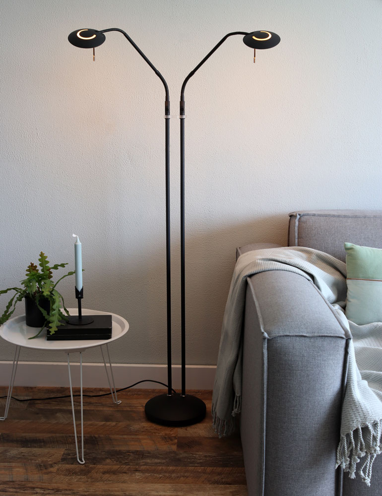Bei der Doppelarm Stehleuchte Steinhauer Zenith Schwarz handelt es um eine Lampe, welche höhenverstellbar, kipp- und drehbar ist. Die Verstellbarkeit liegt zwischen 123 bis 142 Zentimeter. Das Licht kann gedimmt (kühl und warm) werden und verfügt über eine eingebautes LED-Modul. Der Anschluss erfolgt über einen Stecker (Verbindung mit der Steckdose). Ein einstellbarer Lesearm ist vorhanden. Das Material besteht aus Metall und Kunststoff. Die Produktmaße betragen 142 Zentimeter Höhe, 22 Zentimeter Breite und 22 Zentimeter Tiefe.