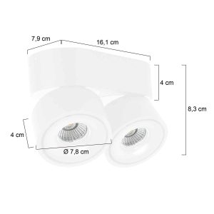 Der 2-Licht-Spot aus der Fez Black-Serie von Mexlite ist eine vielseitige und moderne Beleuchtungslösung. Die Lampe wird einschließlich zwei integrierter LED-Lichtquellen mit 8 Watt geliefert, mit einer Lichtfarbe von 2700 Kelvin und einer Lichtausbeute von 2 x 700 Lumen. Die Spots sind separat dreh- und schwenkbar für einen flexiblen Lichteinfall. Dimmbar mit einem externen Dimmer (nicht im Lieferumfang enthalten). Die LED-Module sind vom Hersteller austauschbar.