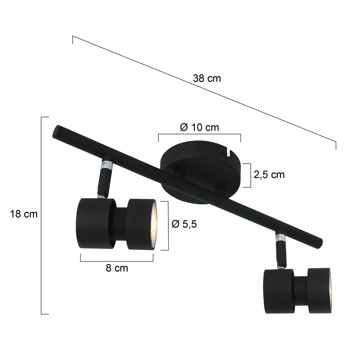 Der moderne schwarze 2-flammige Deckenstrahler Natasja von Steinhauer ist eine stilvolle und funktionale Ergänzung für jedes Interieur. Dieser Deckenstrahler verfügt über zwei verstellbare Strahlköpfe und ist mit GU10-Leuchtmitteln mit Dim-to-Warm-Technologie ausgestattet, ideal um die richtige Stimmung zu schaffen.