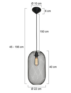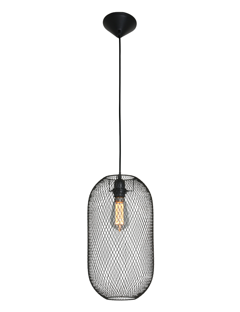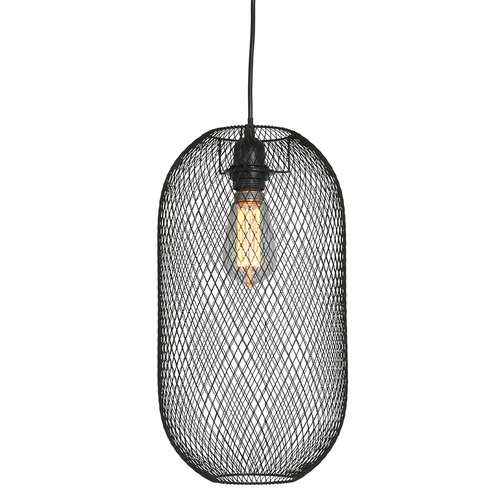 Liebst du es luftig? Dann ist Mexlites “Bodine” eine ovale Käfiglampe aus Gitter für dich. Die rautenförmigen Öffnungen des Gitters verleihen dieser Hängelampe einen verspielten Effekt. Diese schwarze Hängelampe macht sich gut über Esstischen, aber auch in einem Flur sorgt sie für einen überraschenden Effekt. Setze eine schöne Lichtquelle ein und du hast einen echten Blickfang!