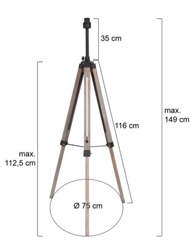 Die Stehlampe aus der Triek-Serie strahlt natürliche Eleganz aus. Das Dreibein aus grau lackiertem Holz mit schwarzen Metallakzenten verleiht einen robusten Look. Mit einer E27-Fassung und einem integrierten Ein/Aus-Schalter im Kabel ist die Lampe einfach zu bedienen. Füge einen Schirm deiner Wahl hinzu und schaffe ein einzigartiges Stimmungslicht in deinem Interieur. Diese Stehlampe der Marke Mexlite wird mit 2 Jahren Garantie geliefert.