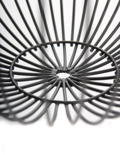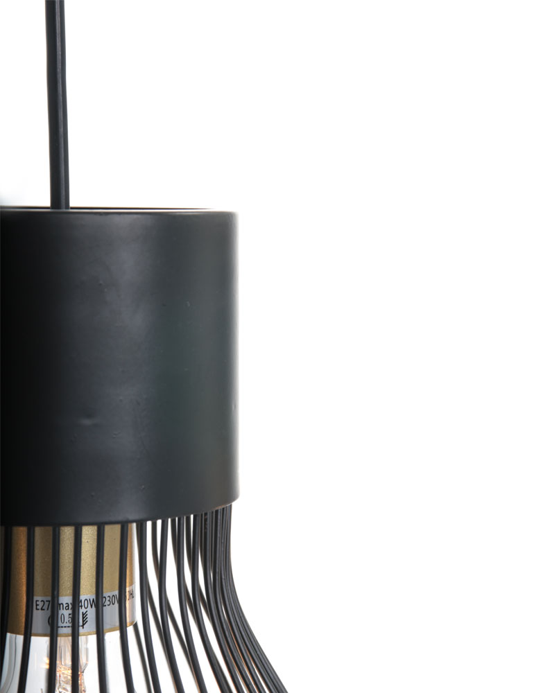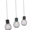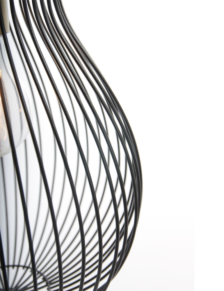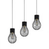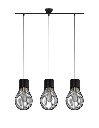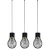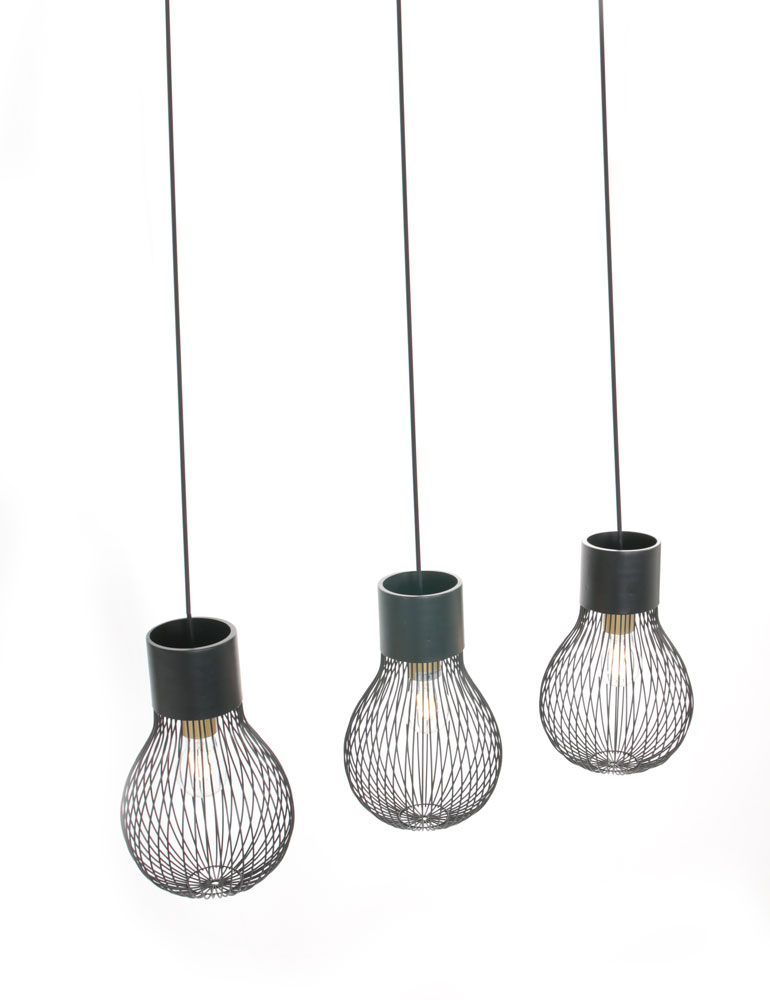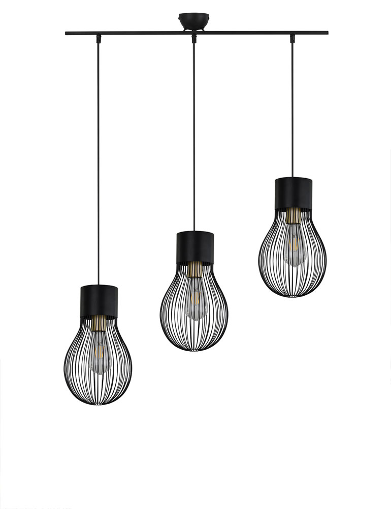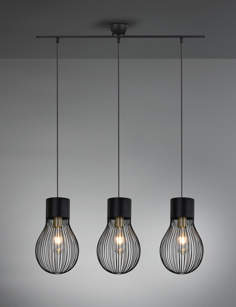 “Haben Sie eine neue Lampe?” Das werden Sie oft hören, denn diese schwarze Esstischlampe fällt auf. Drei Lampen in Form von Glühbirnen hängen an einem horizontalen Rohr. Bestimmen Sie die individuelle Höhe für einen spielerischen Effekt selbst. Diese Lampenschirme sind Drahtlampen und die Birnenform wird durch vertikale Metalldrähte gebildet. Lassen Sie sich „Dave“ von Trio Leuchten liefern?