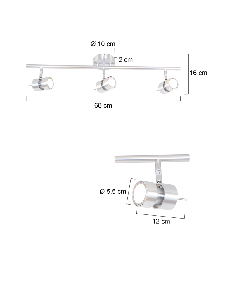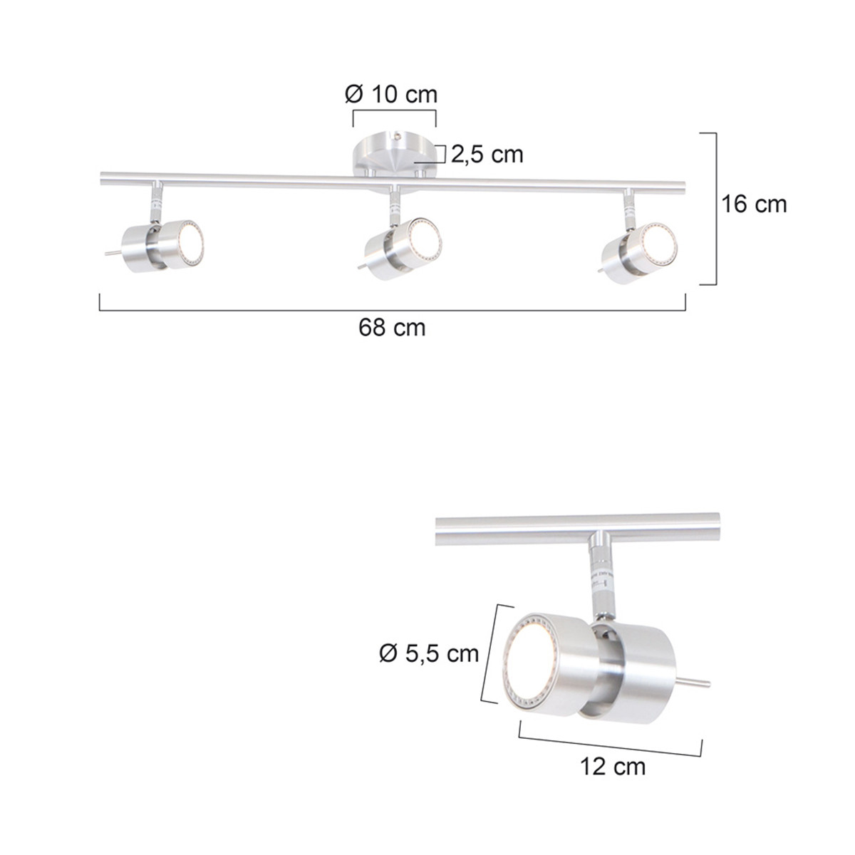 Der vielseitige stahlfarbige 3-flammige Deckenstrahler Natasja von Steinhauer kombiniert modernes Design mit optimaler Beleuchtung. Die drei verstellbaren Spotköpfe bieten Flexibilität, sodass du das Licht dort hinrichten kannst, wo es benötigt wird. Inklusive GU10 Lichtquellen mit Dim-to-Warm-Funktion, Lichtausbeute von bis zu 480 Lumen und einstellbarer Farbtemperatur zwischen 2200 und 2700 Kelvin. Die Metalloberfläche und die Breite von 68 cm machen ihn perfekt für zeitgemäße Interieurs.
