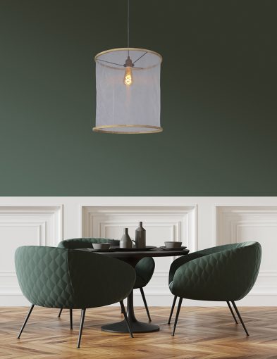Sind Sie noch auf der Suche nach einem schönen Detail in Ihren eigenen vier Wänden? Dann schauen Sie sich die Pendelleuchte Finn von der Marke Mexlite einmal an. Der Lampenschirm ist transparent und besteht aus zwei Holzringen die verbunden sind mit sehr dünner Papierbaumwolle. Verwenden sie ein Leuchtmittel was an eine klassische Glühbirne erinnert. So kreieren Sie einen echten Hingucker!