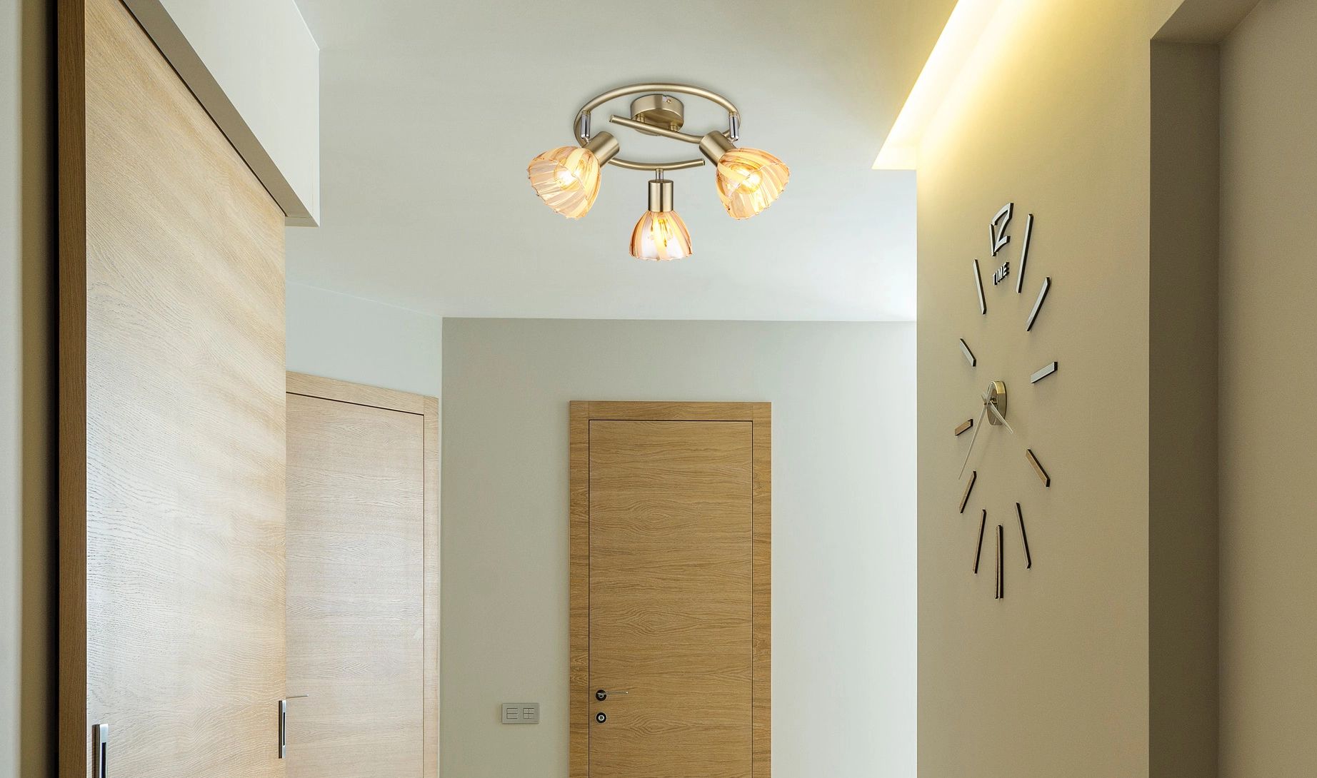 Der ZACHERY Spot kombiniert Luxus und Funktionalität in einem beeindruckenden Design. Seine einzigartige E-förmige Struktur und die stilvollen runden Schirme mit dekorativen Rillen machen diesen Spot zu einem echten Blickfang in jedem Raum. Hergestellt aus mattem Metall in einem eleganten Bronze- und Chromton, passt der ZACHERY perfekt zu verschiedenen Einrichtungsstilen. Die Schirme aus satiniertem bernsteinfarbenem Glas strahlen ein warmes und gemütliches Licht aus, wodurch eine einladende Atmosphäre entsteht. Mit einem Durchmesser von 460 mm sorgt der Spot für eine gleichmäßige und gezielte Lichtverteilung.