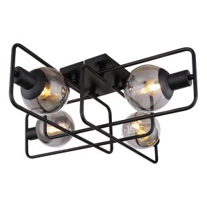 Erleben Sie die Eleganz des minimalistischen Designs mit dieser zeitgemäßen Deckenleuchte. Sie verfügt über vier Metallstäbe mit jeweils 61×61 cm, abgerundet und in mattschwarz ausgeführt für eine stromlinienförmige Ästhetik. An jedem Stab gibt es eine E14-Fassung mit einem rauchigen Glas-Schirm, die dazu gedacht ist, Ihren Wohnraum sowohl stilvoll als auch funktional zu beleuchten. Mit den E14-Fassungen kann der Benutzer die gewünschte Lichtfarbe und Helligkeit bis zu einer maximalen Leistung von 40 Watt personalisieren.