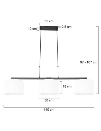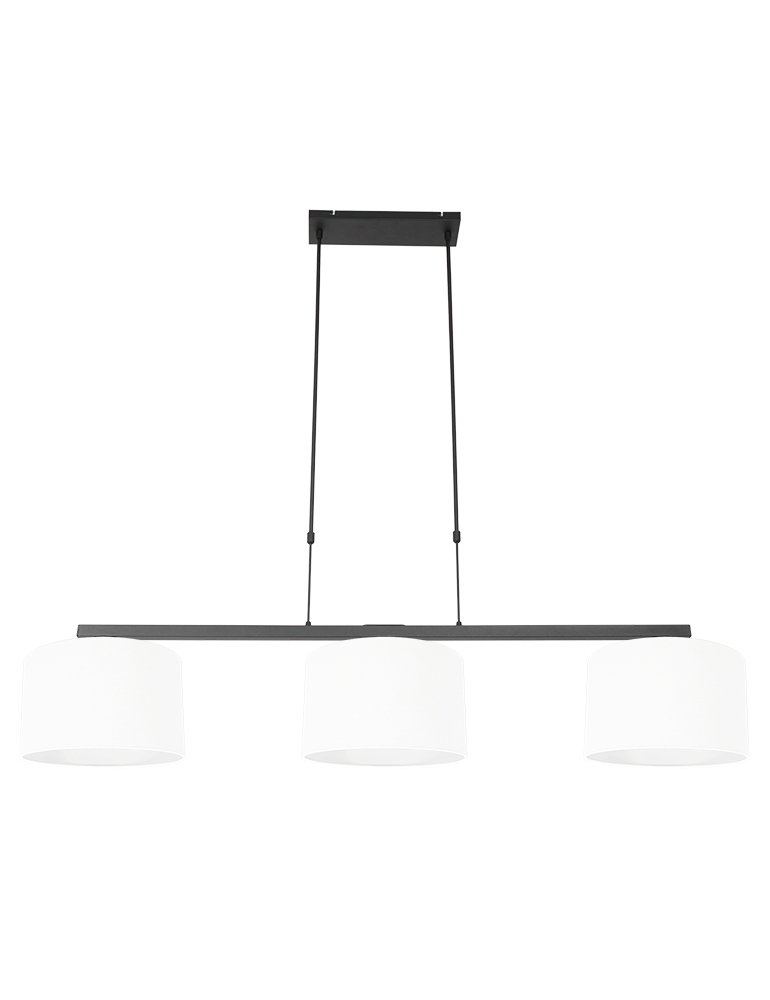 Die Lampe wird mit drei weißen Leinen-Schirmen von 30 cm geliefert, was für eine zeitlose und elegante Ausstrahlung sorgt. Egal, ob Sie sich für eine stimmungsvolle Beleuchtung im Wohnzimmer oder über dem Esstisch entscheiden, diese Pendelleuchte bietet die perfekte Balance zwischen Stil und Funktionalität. Diese Lampe wird mit 2 Jahren Garantie geliefert.