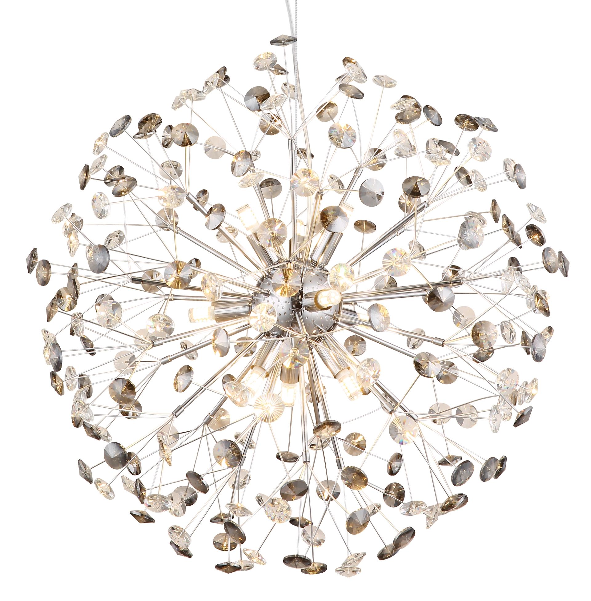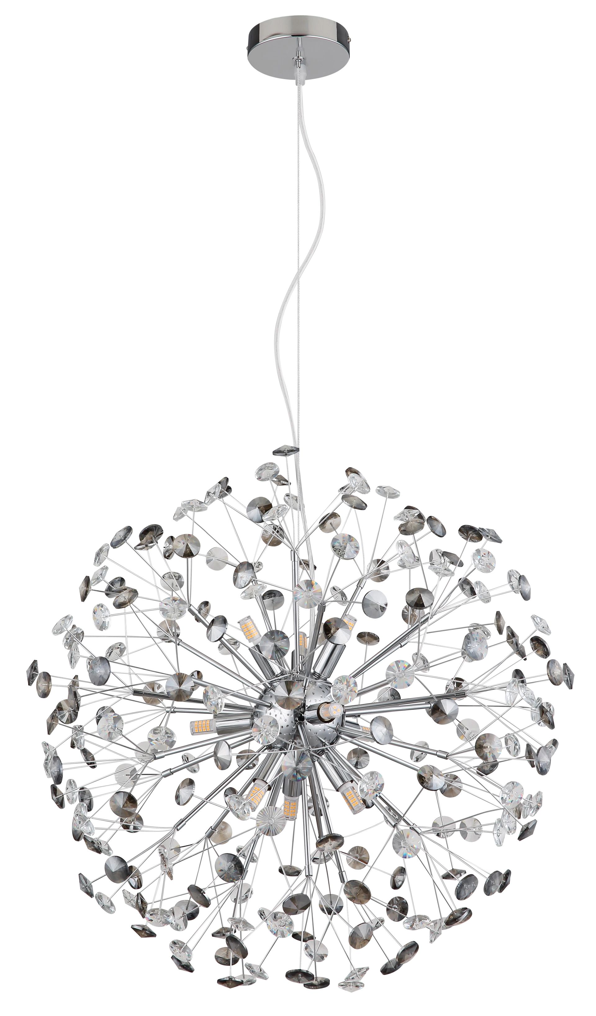 Der elegante Kronleuchter “KATRINA” verkörpert die perfekte Mischung aus klassischem Design und modernem Flair. Mit seinem runden Metallkörper, veredelt in Chrom, und den wunderschönen, kugelförmigen Lampenschirmen aus K9-Kristall in einer raffinierten Rauch- und klaren Nuance verleiht diese Lampe jedem Raum eine luxuriöse Ausstrahlung. Die “KATRINA” ist mit neun G9 LED-Lampen ausgestattet, die eine warme Lichtfarbe von 3000K und eine Lichtausbeute von 350 Lumen bieten. Dies sorgt für eine gemütliche und einladende Atmosphäre in Ihrem Interieur.