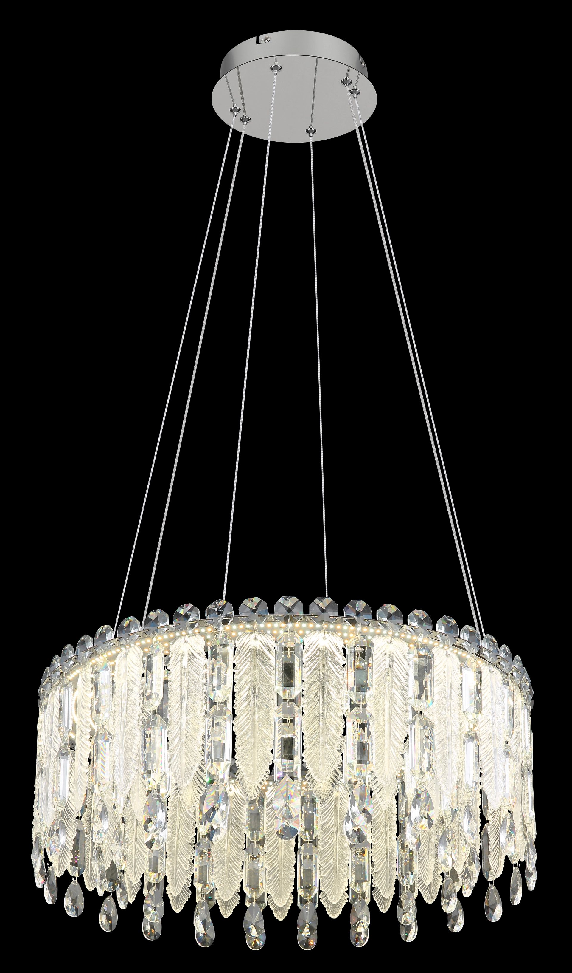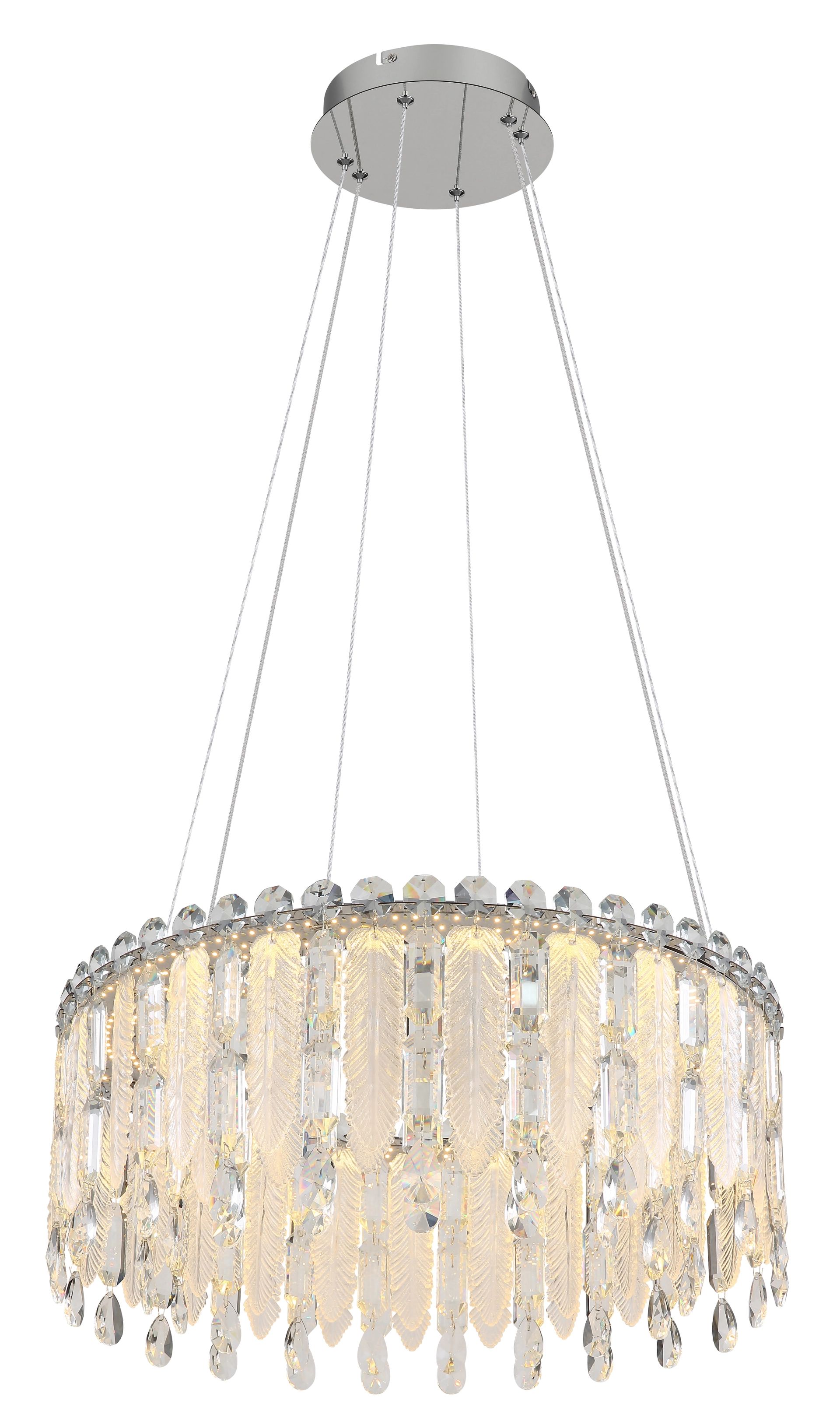 Die elegante Hängeleuchte Klunka ist eine stilvolle Ergänzung für Ihr Interieur dank der Kombination aus moderner Technologie und einem raffinierten Design. Der verchromte Metallkörper in Kombination mit glitzernden K5-Kristallen strahlt Luxus aus. Mit einem großzügigen Durchmesser von 600 mm und einer Leistung von 58W bietet diese Hängeleuchte eine beeindruckende Lichtausbeute von 3770 Lumen, wodurch Ihr Raum hell und stimmungsvoll beleuchtet wird.