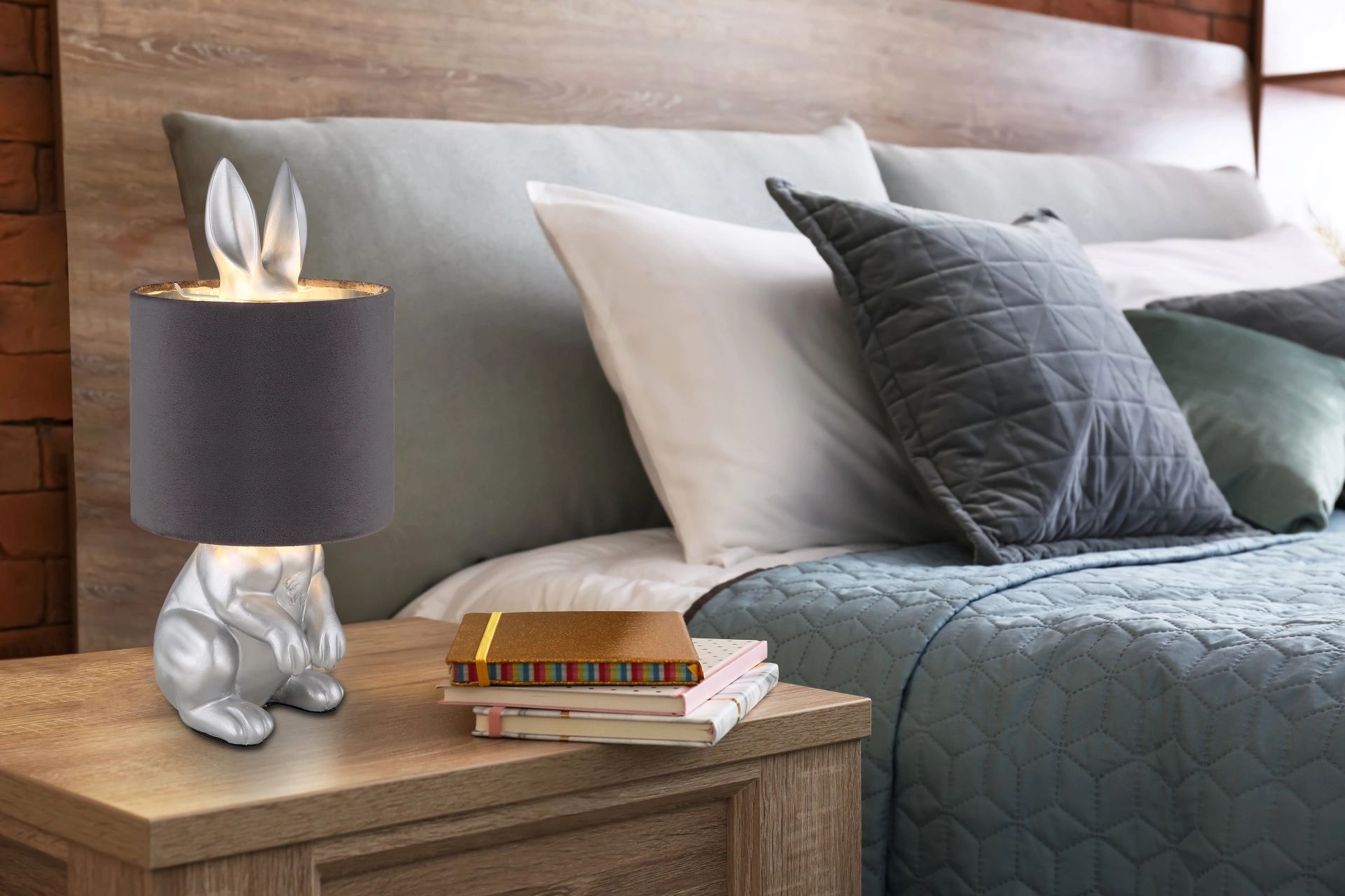 Elegante Kaninchen Tischlampe aus grauem Velours Rabbit