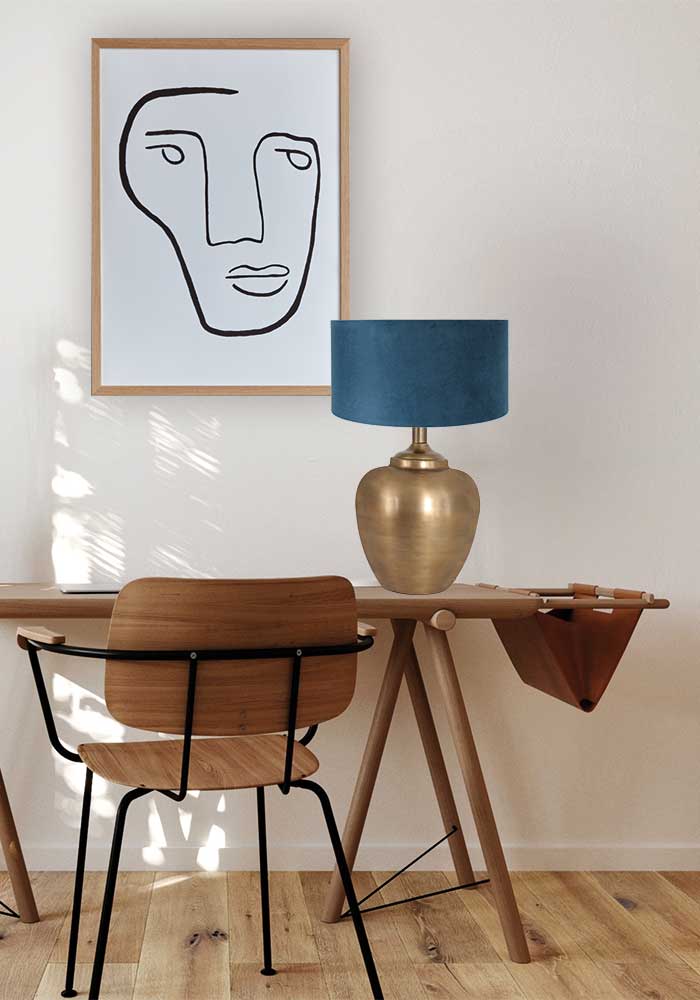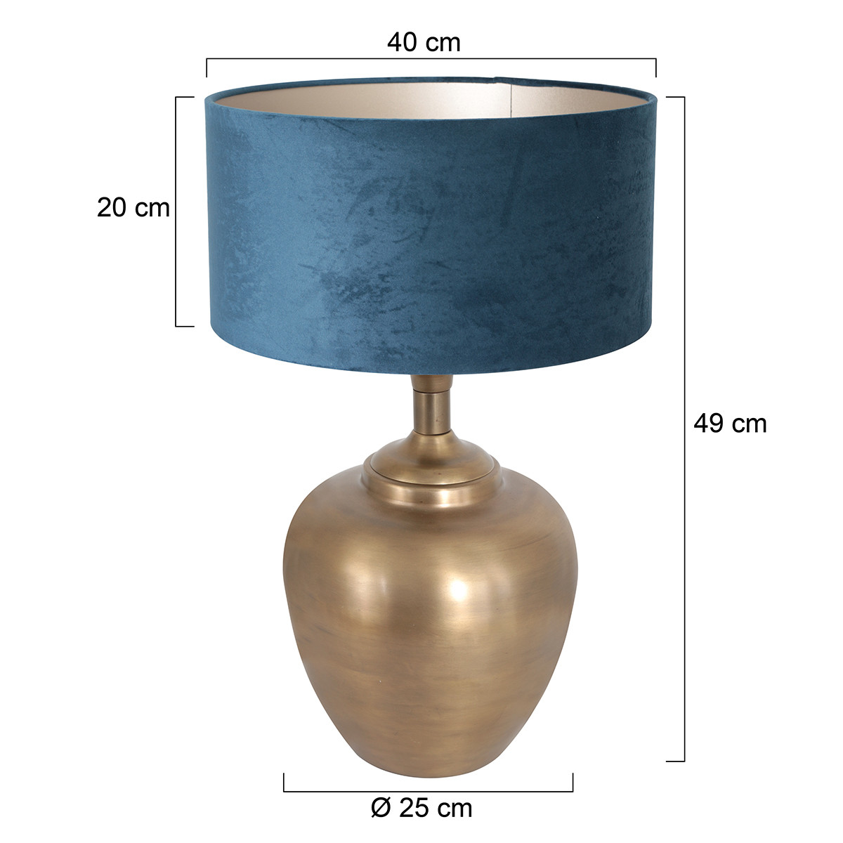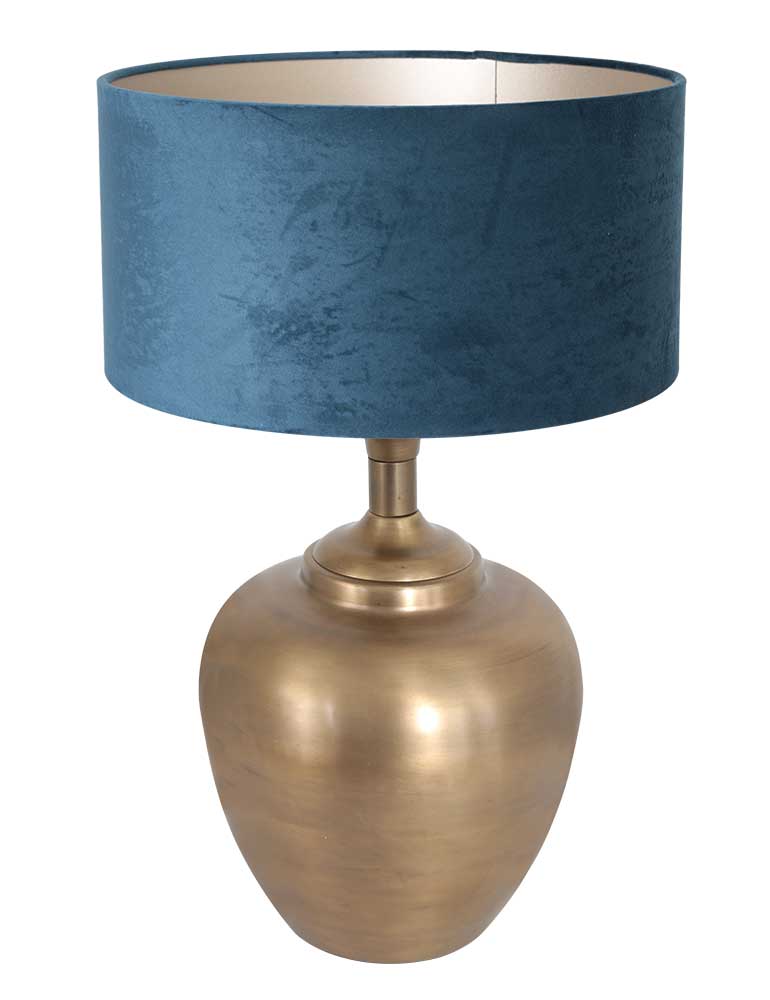 Die bronzefarbene Tischlampe mit blauen Schirm aus der Brass-Serie von Steinhauer bringt eine elegante und stimmungsvolle Ausstrahlung ins Zuhause. Das vasenförmige Gestell hat eine raffinierte bronzene und goldene Oberfläche, die für ein luxuriöses und zeitloses Design sorgt. Der samtweiche blaue Schirm fügt einen stilvollen Kontrast hinzu und verteilt das Licht auf eine warme und stimmungsvolle Weise.