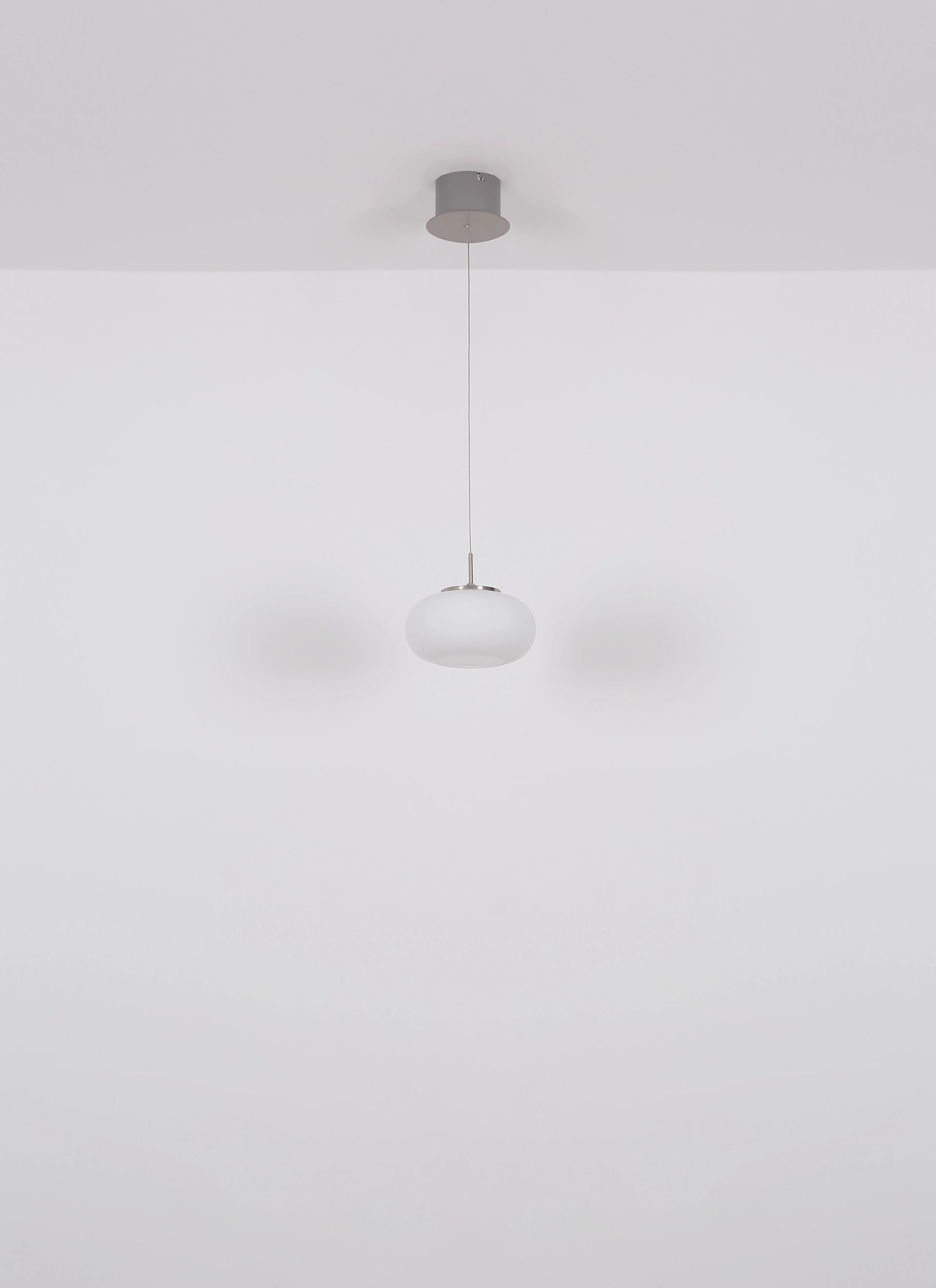 Die Pendelleuchte Quintara ist eine elegante Leuchte mit einem runden, kugelförmigen Glasschirm. Der Lampenkörper besteht aus mattem Nickel, was diese Lampe perfekt für moderne Einrichtungsstile macht. Der opal-farbene Glasschirm sorgt für eine stimmungsvolle und gleichmäßige Lichtverteilung in jedem Raum. Mit einem Durchmesser von 200 mm ist diese Lampe besonders gut für kleinere Zimmer geeignet, wo sie eine warme und gemütliche Atmosphäre schafft.