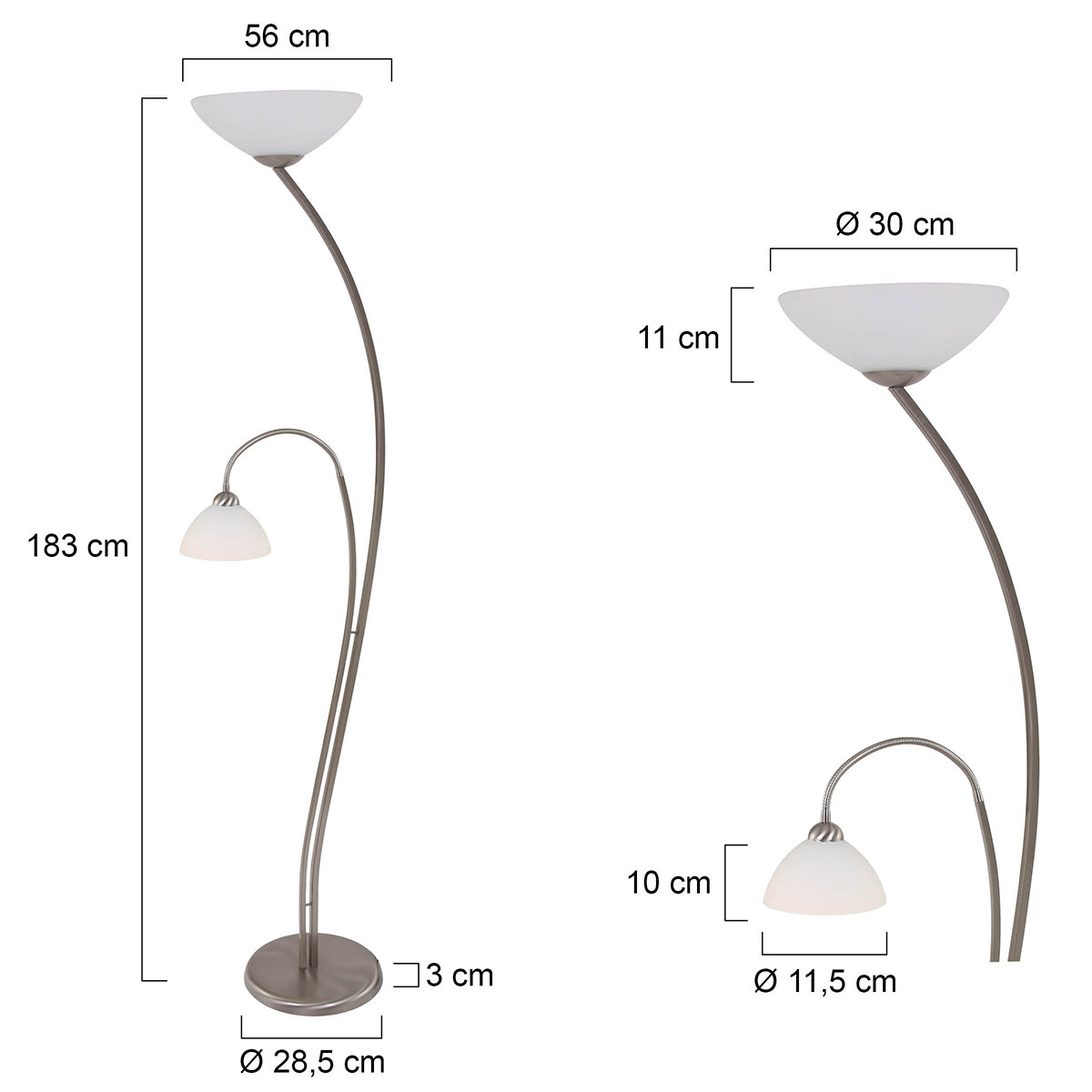 Dass Italien romantisch ist, das weiß jeder. Capri ist eine kleine Insel nahe Neapel, aber „Capri“ ist auch diese romantische Stehlampe von Steinhauer. Auf einer runden Bodenplatte stehen zwei elegant gebogene, Rohrständer aus gebürstetem Stahl. An dem mannshohen Ständer befindet sich der Uplighter aus weißem Milchglas. Sein kleiner Bruder ist die Leselampe. Kuschele dich gemütlich mit „Capri“ bei einem guten Buch.