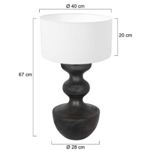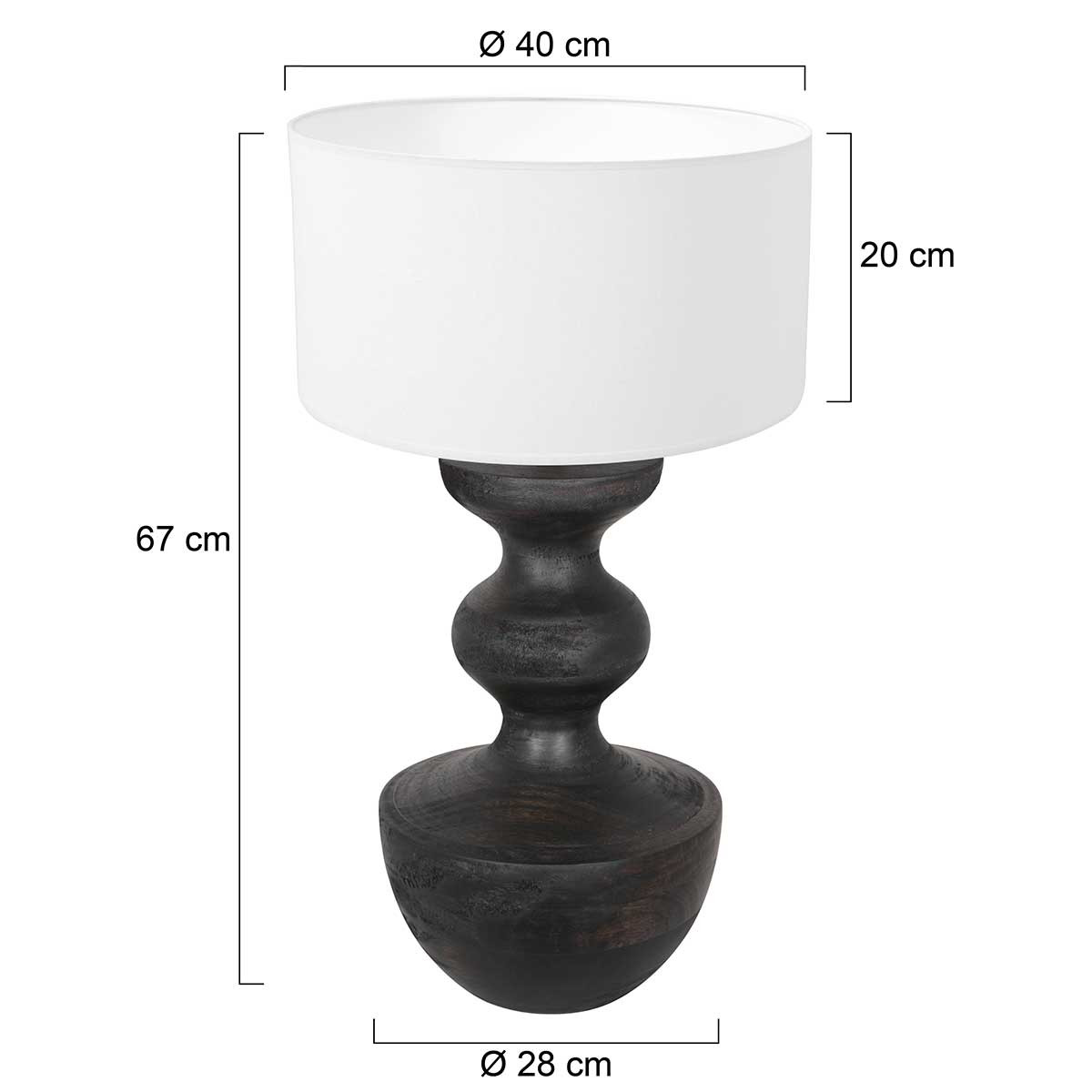 Diese elegante Tischlampe kombiniert Handwerk und zeitgemäßes Design. Hergestellt aus Holz mit einer tiefen, dunkelbraunen, fast schwarzen Oberfläche strahlt diese Lampe eine moderne und raffinierte Ausstrahlung aus. Mit einer Höhe von 70 cm ist sie ein stilvoller Blickfang in jedem Interieur. Der weiße Leinenlampenschirm mit einem Durchmesser von 40 cm und einer Höhe von 20 cm sorgt für sanfte und stimmungsvolle Beleuchtung.