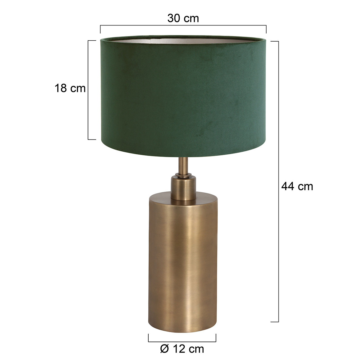 Die bronzefarbene Tischlampe Brass verleiht jedem Interieur eine warme und stilvolle Note. Dieses kompakte Modell ist 34 cm hoch und vielseitig einsetzbar, während es ein stimmungsvolles Licht verbreitet. Das bronzefarbene Gestell wird mit einem grünen Samtschirm kombiniert, was einen reichen und luxuriösen Look verleiht.