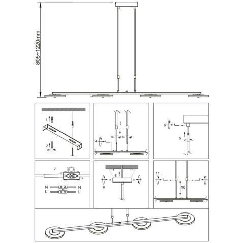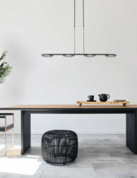 Die integrierten LED-Lichtpunkte bieten eine subtile und gleichmäßige Lichtverteilung, während die Dimmfunktion es ermöglicht, die Intensität einfach anzupassen. Mit einer Breite von 120 cm und einer höhenverstellbaren Aufhängung ist diese Lampe sowohl funktional als auch ästhetisch eine Bereicherung für Ihr Interieur.