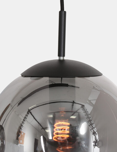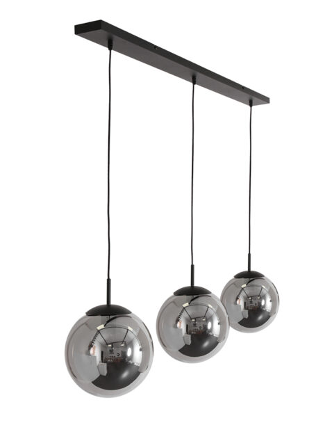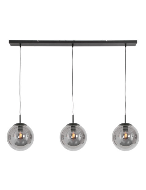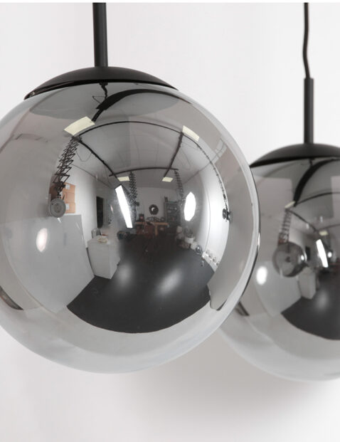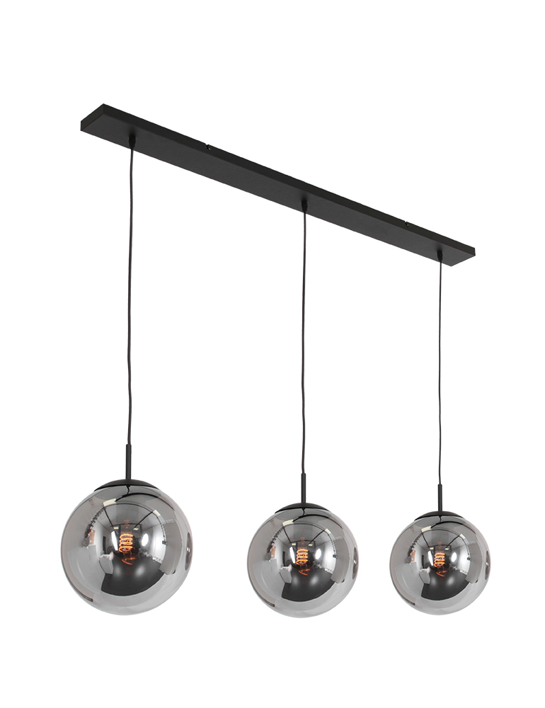 Dreilichts schwarze Pendelleuchte mit Rauchglas-Kugeln Steinhauer Bollique LED