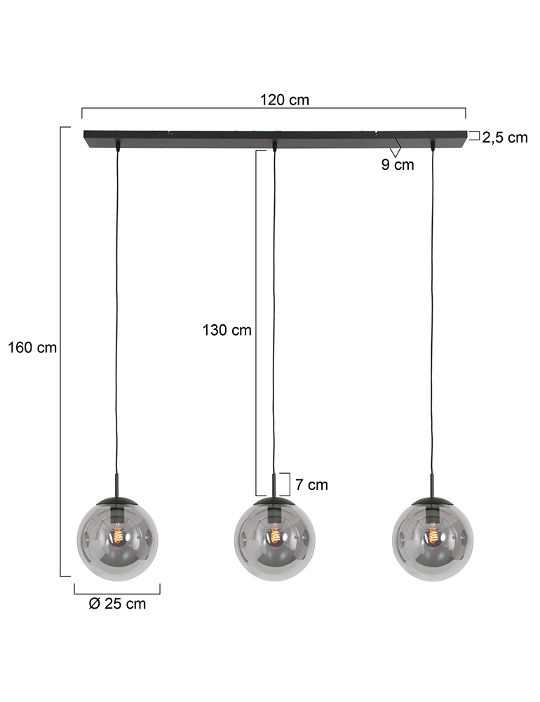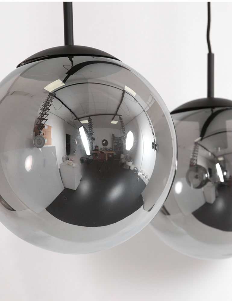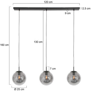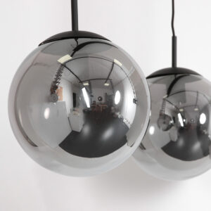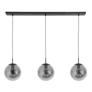 Bringe Eleganz in dein Interieur mit der Bollique Pendelleuchte mit drei Lichtern. Drei große rauchfarbene Glaskugeln mit subtiler Spiegelung hängen an einer Deckenplatte von 120 cm Breite. Ausgestattet mit E27-Fassungen und höhenverstellbar zwischen 50 und 160 cm. Die Kombination aus Glas und Rauchfarben macht diese Lampe zu einem stimmungsvollen Blickfang.