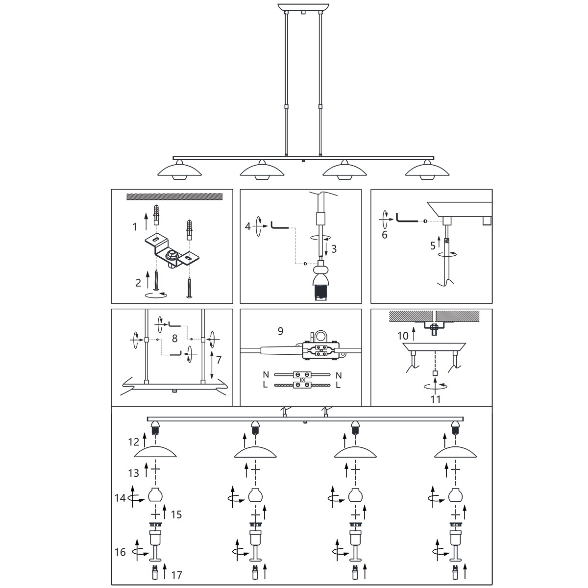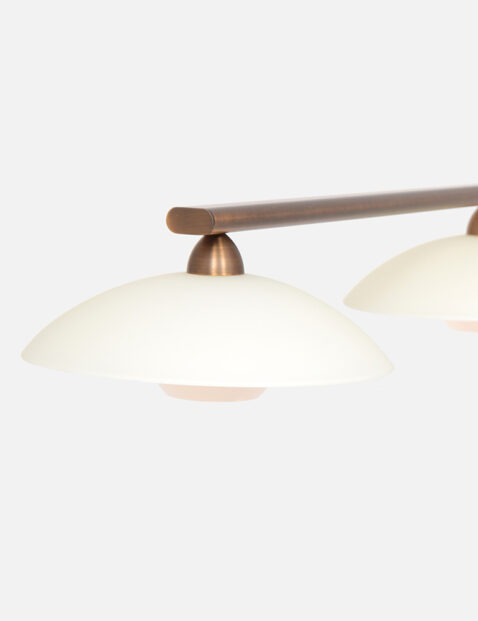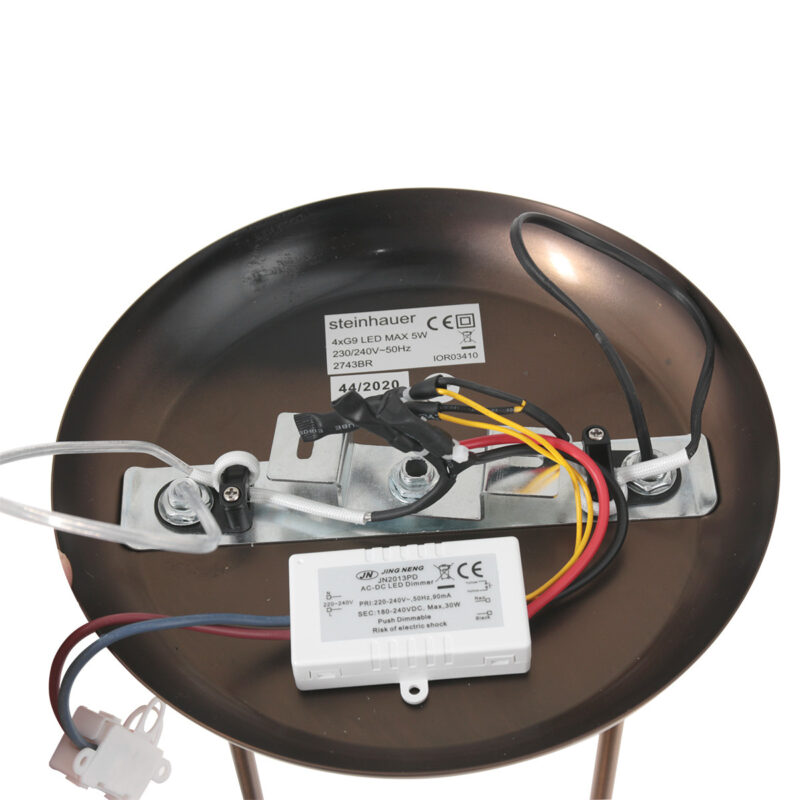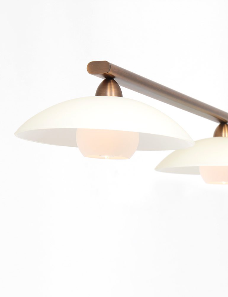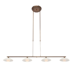 Wow-Faktor 100%. Suchst du eine imposante Lampe über deinem Esstisch, dann ist diese “Sovereign Classic” von Steinhauer für dich bestimmt. Von einer Deckenplatte hängt an zwei Stangen ein horizontaler Rohr. An diesem Rohr hängen vier cremefarbene, milchglasige Schalenlampen, jede mit ihrer eigenen schönen LED-Quelle darunter. Das gesamte Metall ist bronzefarben. Erzählst du in einer Bewertung, wie dieses Schmuckstück bei dir aussieht?
