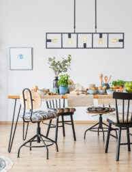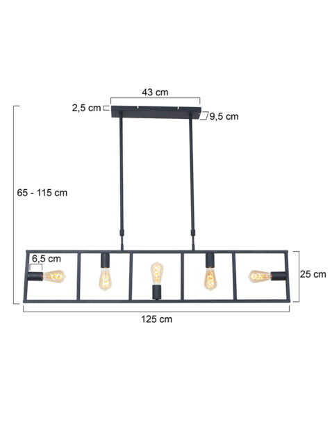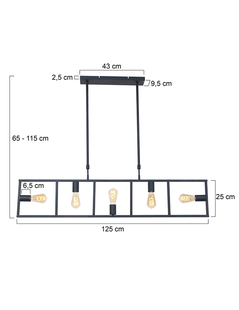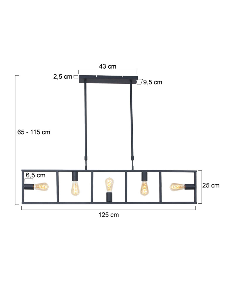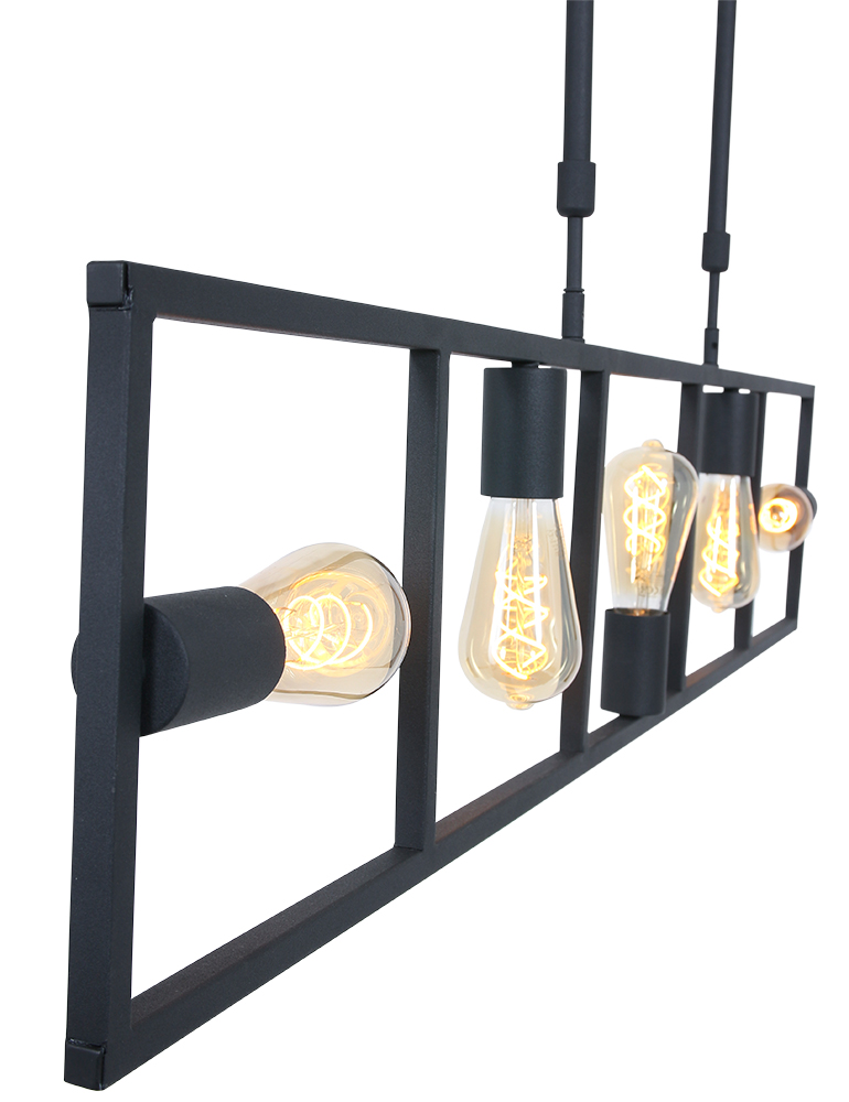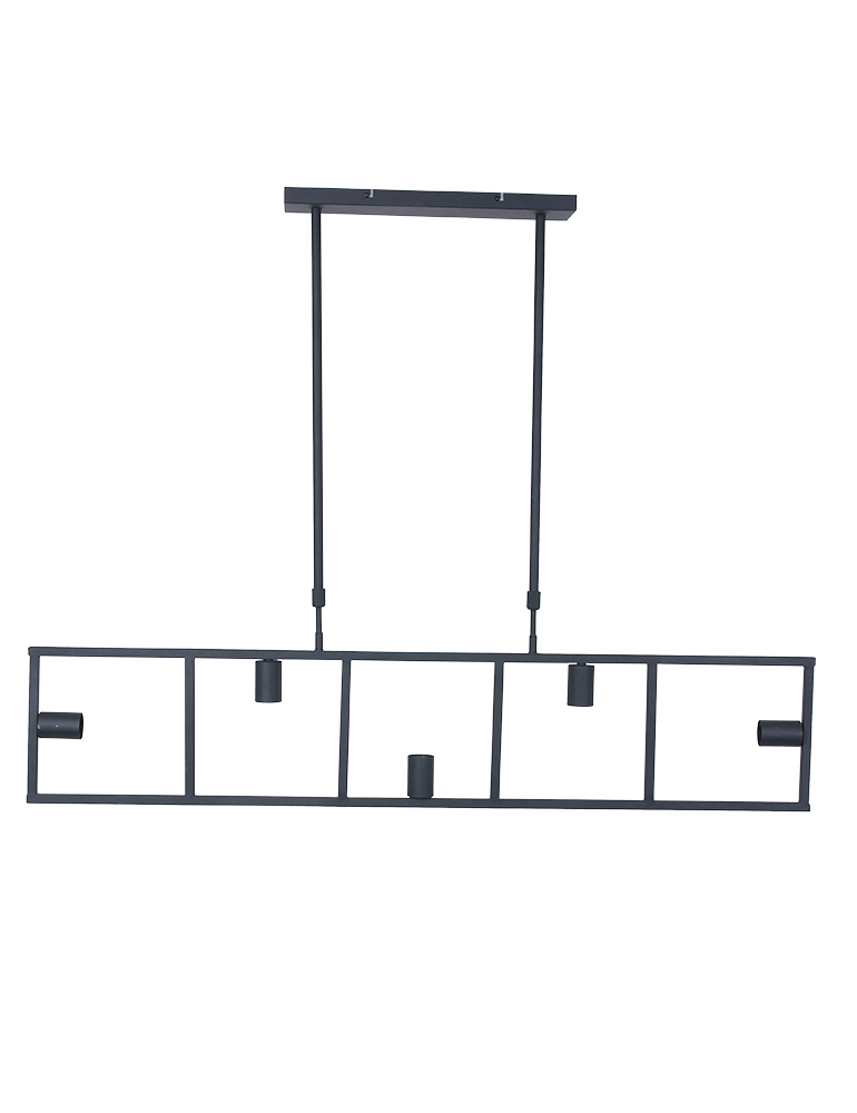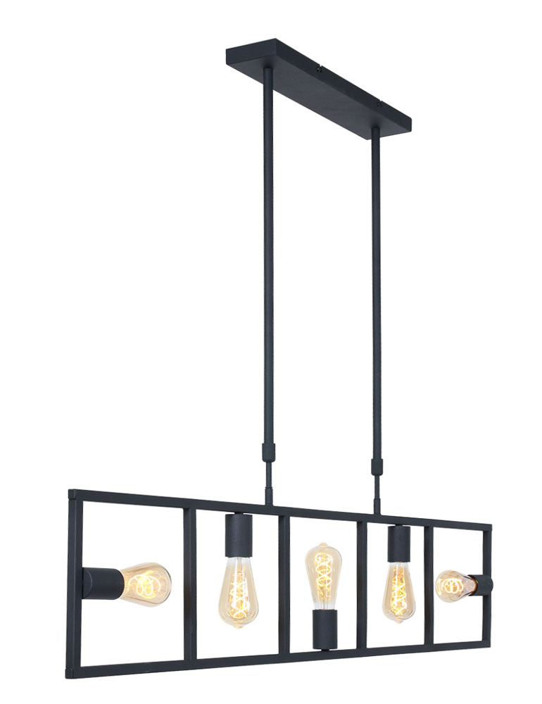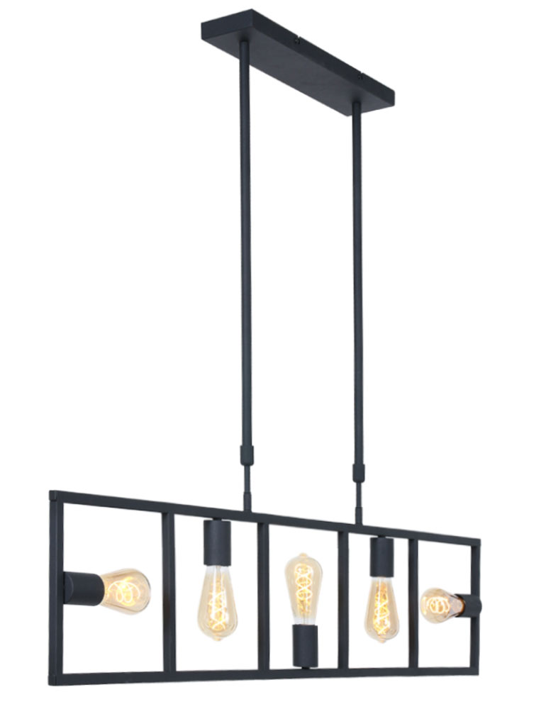 Entscheiden Sie sich für eine stilvolle Leuchte mit mattschwarzem Rahmen!Diese Pendelleuchte im Industriestil ist ein echter Hingucker in Ihrem Wohnraum. Die Schlichtheit des zeuitgemäßen Designs lässt die Hängelampe in viele Räume gemütlicher wirken. Das Lampenmodell passt zum Beispiel über einem Esstisch oder in die Küche. Durch die ihrer fünf Lichtquellen erhellt die Leuchte mühelos lange Tische und große Räume.