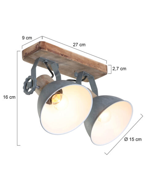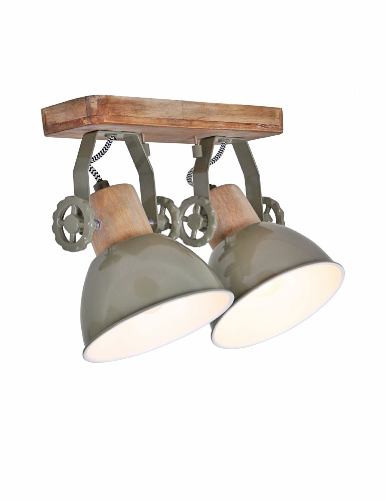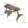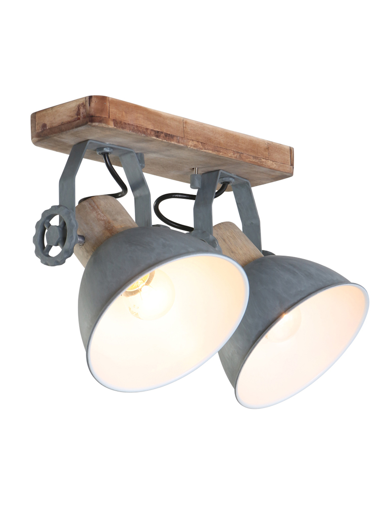Der coole graue 2-flammige Decken- oder Wandspot Gearwood von Mexlite bietet eine perfekte Mischung aus industriellen und modernen Elementen. Die glänzenden grauen Schirme und hölzernen Details sorgen für eine stilvolle Ausstrahlung. Beide Spots sind neigbar und drehbar und können separat eingestellt werden, um eine optimale Lichtverteilung zu erreichen. Dank der verstellbaren Räder kannst du den Lichteinfall einfach anpassen. Ausgestattet mit einer E27-Fassung, geeignet für Lichtquellen bis 40 Watt. Die Schirme haben einen Durchmesser von 15 cm und eine Gesamthöhe von 19 cm. Dimmbar mit einem externen Dimmer.