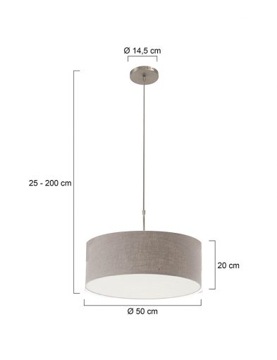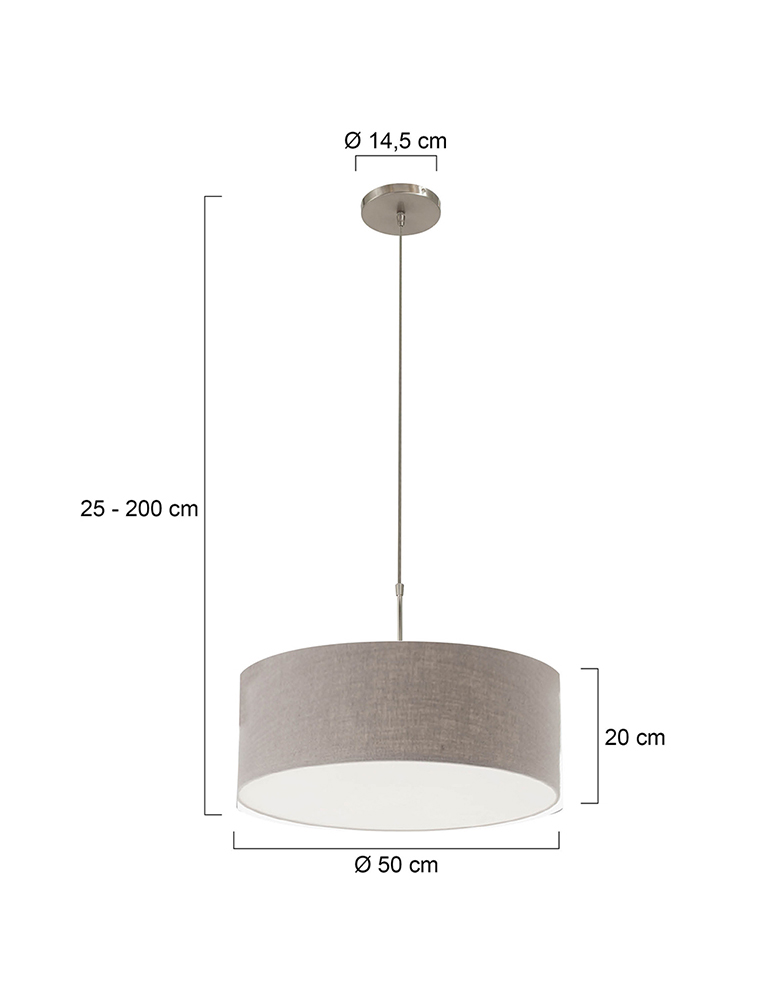 Die elegante einlichtige Stahl/Grau Stresa Ø50 cm stammt von der Marke Steinhauer. Der Schirm dieser Lampe besteht aus grob gewebtem Leinen. Diese Hängeleuchte hat eine graue Farbe. Es ist eine ausgezeichnete Lampe, um sie in einer ländlichen oder industriellen Einrichtung aufzuhängen. Die einlichtige Lampe passt gut über den Esstisch oder in ein Schlafzimmer. Du kannst die Lampe dimmen.