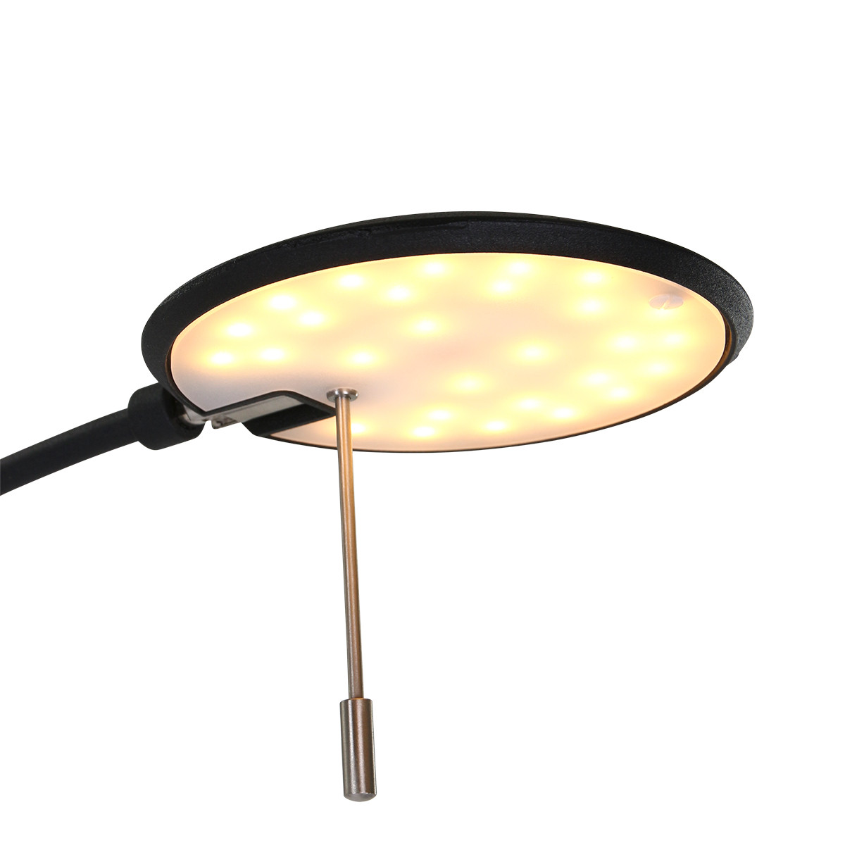 Modern, aber robust! Das ist die schwarze Variante von Zenith. Diese einzigartige Leselampe ist wirklich ein Teil deiner Einrichtung. Stelle sie neben den Lesesessel für zusätzliche Unterstützung am Abend. Fertig mit Lesen? Dimme die Lampe dann auf stimmungsvolles Licht und drehe den Arm einfach zur anderen Seite. So ist Zenith nicht nur praktisch, sondern sorgt auch für eine stimmungsvolle Lichtverteilung. Oben auf dem Schirm befindet sich ein Detail, das diese Lampe besonders gemütlich macht: eine U-förmige Öffnung. Auch hier strömt Licht hindurch, was für eine schöne, stimmungsvolle Lichtverteilung sorgt. Fan dieser Lampe? Schau dir auch die anderen Lampen aus der Zenith-Serie an!