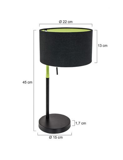 Die biegbare Tischlampe stammt von der Marke Trio Leuchten. Die schwarze Halterung ist aus Metall und der Lampenschirm aus Stoff. Die Kombination von schwarz mit den leuchtend grünen Blättern ist sehr gelungen. Die Gesamthöhe beträgt 45 cm und der Schirm hat einen Durchmesser von 22 Zentimetern. Die Lampe hat eine E14-Fassung und eignet sich daher für alle Lichtquellen mit bis zu 40 Watt. Sie können die Lampe steuern, indem Sie den Lampenschirm einfach berühren.