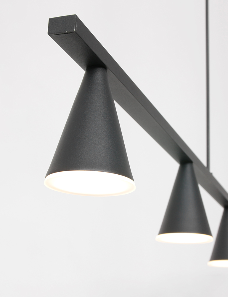 Wenn du für deinen gesamten Esstisch Licht möchtest, haben wir die “Vortex” von Steinhauer für dich. Die Lampe verdankt ihren Namen jedem trichterförmigen Lampenschirm dieser Hängeleuchte. Diese schwarze Lampe ist 1,20 Meter lang und ihre fünf LED-Lichtquellen spenden herrlich viel Licht. Möchtest du ein romantisches Dinner, hast du in der Mitte der Lampe einen praktischen Touch-Dimmer. Guten Appetit!