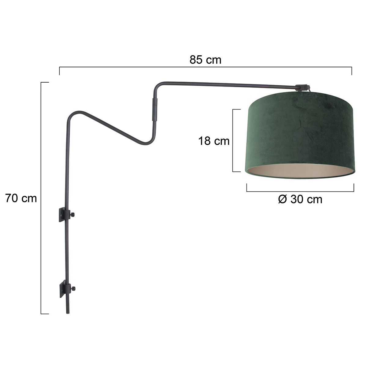 Stehende Stehlampe aus der Linstrom-Serie von Steinhauer, hergestellt aus Metall mit schwarzer Pulverbeschichtung. Der dunkelgrüne Samt-Schirm fügt eine raffinierte und trendige Note hinzu. Mit einer Höhe von 140 cm und einem verstellbaren Arm von 95 cm bietet diese Lampe maximale Flexibilität. Die E27-Fassung ermöglicht es Ihnen, einfach die gewünschte Lichtquelle auszuwählen. Geliefert mit einem 250 cm langen Kabel mit Fußschalter und 2 Jahren Garantie.