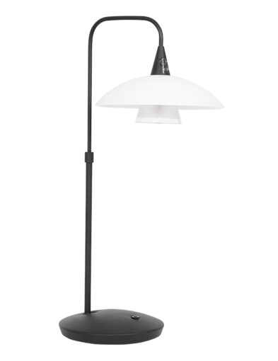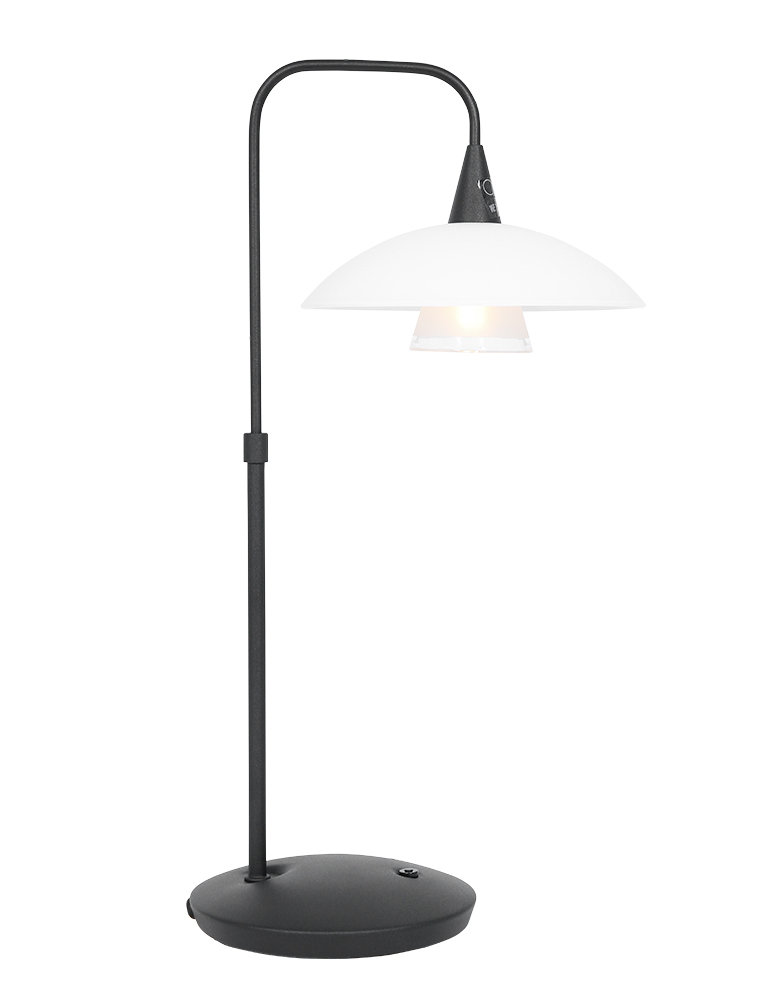 Tallerken ist Dänisch für Schüssel. Warum siehst du, wenn du auf den weiten runden Milchglas-Schirm dieser eleganten Tischlampe schaust. Die sanfte Farbe hebt sich schön vom mattschwarzen Lampenrahmen ab. Der konische Sockel geht unter der Schüssel organisch in Milchglas mit dimmbaren gefiltertem Licht über. Zum Verlieben schön auf einem Beistelltisch oder Nachttisch.