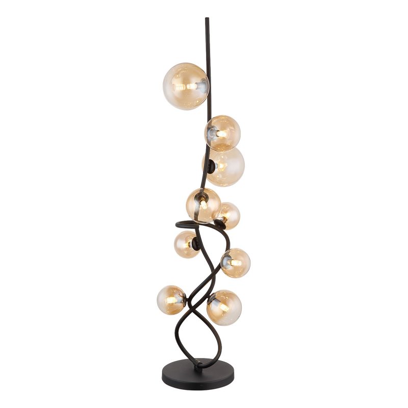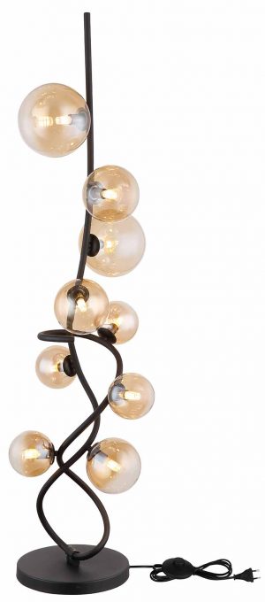 Gedrehte Bodenlampe Schwarz 9 Bernstein-Glas-Kugeln Globo Tuberius