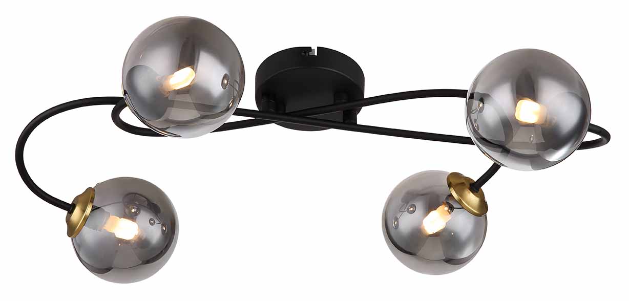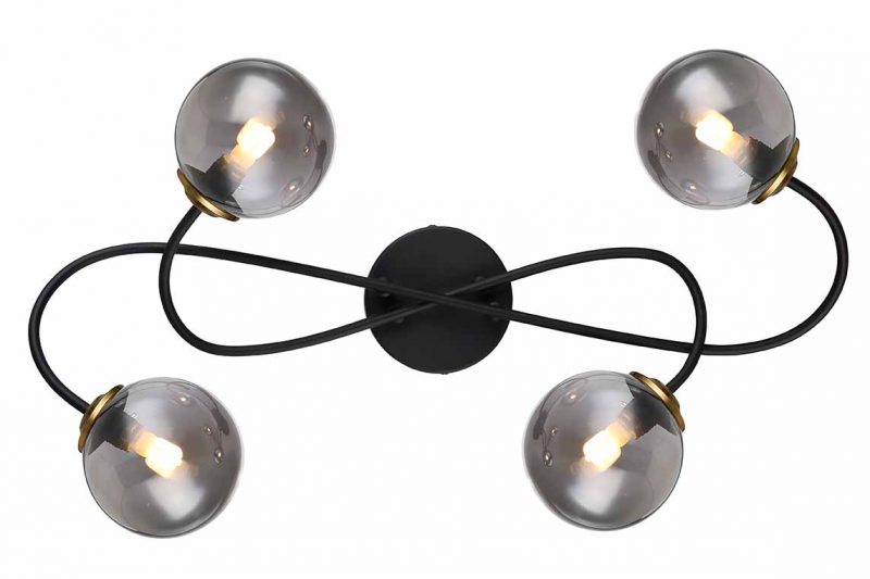 Gedrehte Deckenlampe Schwarz/Messing 4 Rauchglas-Kugeln Globo Jorge