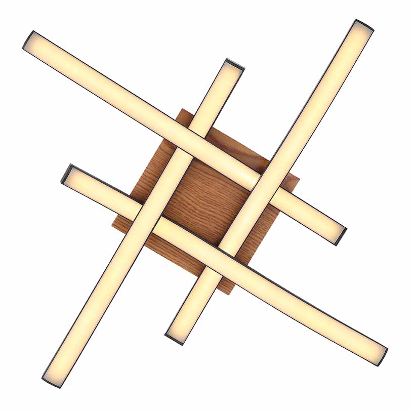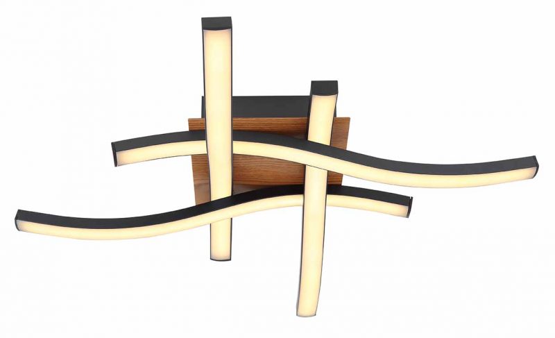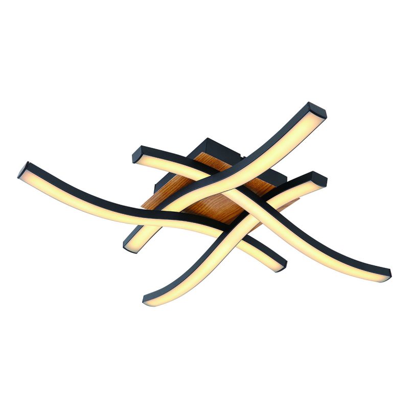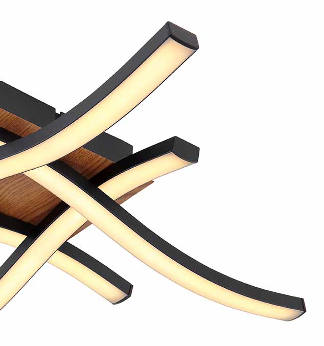 Das Evita-Modell Deckenleuchte kombiniert elegantes Design und Funktionalität in einer kompakten Einheit von 43×43 cm. Diese zeitgenössische Lichtquelle bringt eine Kombination aus stilvollem schwarzen Metall mit rustikalem Holzlook. Die Lampe zeichnet sich durch ihre wunderschön gebogenen, gekreuzten Metallstreifen aus, die mit opalem Acryl verglast sind, um die integrierte LED-Beleuchtung zu schützen. Mit 1200 Lumen sorgt sie für ein helles und warmes weißes Licht von 3000 Kelvin, perfekt für die Schaffung einer gemütlichen und einladenden Atmosphäre im Innenbereich.