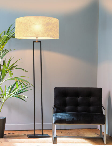 Gerade Stehlampe mit weißem Schirm Light & Living Shiva silber und schwarz