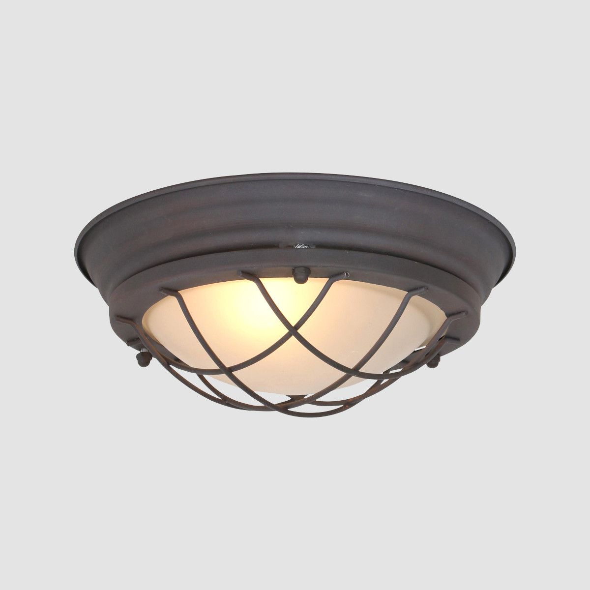 Diese braune Deckenleuchte aus der Lisanne-Serie kombiniert einen industriellen Look mit subtiler Eleganz. Das Metallgehäuse hat eine robuste Ausführung, und der Glasschirm sorgt für eine sanfte Lichtstreuung. Die Lampe hat einen Durchmesser von 29 cm und eine Höhe von 11 cm. Ausgestattet mit einer E27-Fassung, geeignet für Lichtquellen bis 40 Watt. Dimmbar mit einem externen Dimmer und einer dimmbaren Lichtquelle für eine stimmungsvolle Beleuchtung.