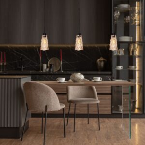 Die Glas-Hängeleuchte Vidrio von Steinhauer strahlt einen Retro-Charme mit einem zeitgemäßen Twist aus. Der becherförmige Schirm aus gewelltem bernsteinfarbenem Glas verteilt ein stimmungsvolles und warmes Licht. Ausgestattet mit einem E27 Sockel, wodurch die Lichtquelle nach Wunsch gewählt werden kann. Das schwarze Gestell bietet einen stilvollen Kontrast und ist in der Höhe von 30 bis 160 cm verstellbar. Mit einem Durchmesser von 13 cm ist diese Lampe ideal über einer Bar oder als stimmungsvolle Ergänzung im Esszimmer, Flur, Schlafzimmer oder Wohnzimmer. Geliefert mit 2 Jahren Herstellergarantie.