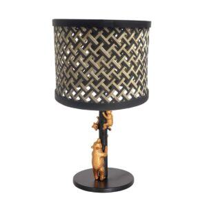 Schwarze Tischlampe mit goldenem Bären und Rattanschirm Anne Light & Home Animaux