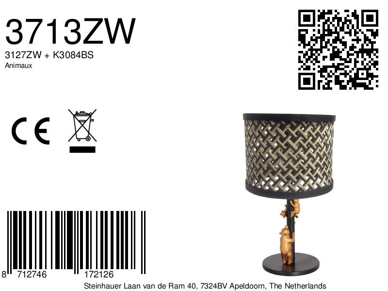 Schaffen Sie eine einzigartige, verspielte Atmosphäre mit der schwarzen Tischlampe Animaux von Anne Light & Home. Die Kombination aus einem goldfarbenen Bären und einem Rattanschatten macht diese Lampe zu einem echten Blickfang. Mit einer Höhe von 71 cm und einem Durchmesser von 40 cm bietet diese Lampe nicht nur Licht, sondern auch eine dekorative Bereicherung für jeden Raum.