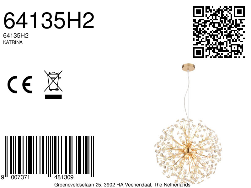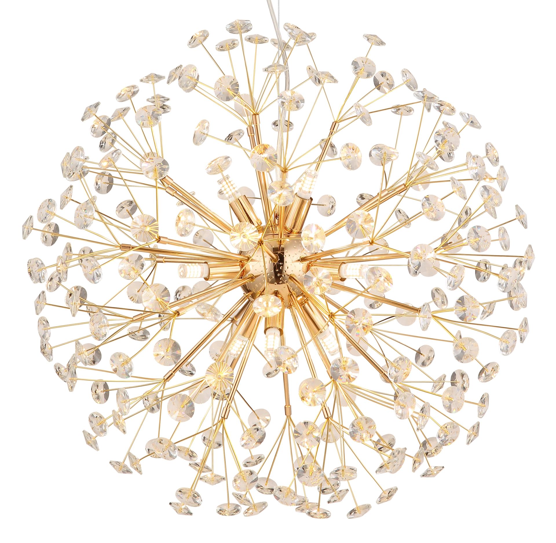 Lernen Sie den KATRINA Kronleuchter kennen, gefertigt aus goldfarbenem Metall und ausgestattet mit funkelnden K9-Kristallen. Diese imposante kugelförmige Lampe ist ein wahrer Blickfang, mit einem Design, das die traditionelle Eleganz betont. Das goldene Gehäuse und der klare K9-Kristallschirm sorgen gemeinsam für ein bezauberndes Lichtspiel, das jedem Raum eine luxuriöse Ausstrahlung verleiht. Mit neun G9-LED-Lampen strahlt dieser Kronleuchter ein warmes Licht aus, mit einer Farbtemperatur von 3000K und einer Lichtausbeute von 350 Lumen.