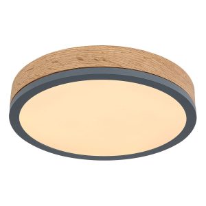 Tauchen Sie Ihren Raum in ein warmweißes Licht von 3000 Kelvin mit dieser stilvollen runden Deckenleuchte. Das einzigartige Design umfasst ein Gehäuse aus Metall und MDF mit einer schönen Holzoptik, das eine opalweiße, Kunststoffabdeckung umschließt. Es sind LED-Lampen enthalten, die die opalweiße Abdeckung betonen und eine warme Ausstrahlung im Raum verbreiten. Die Lampe hat einen Durchmesser von 30 cm und ist eine beeindruckende Bereicherung für jedes Interieur.