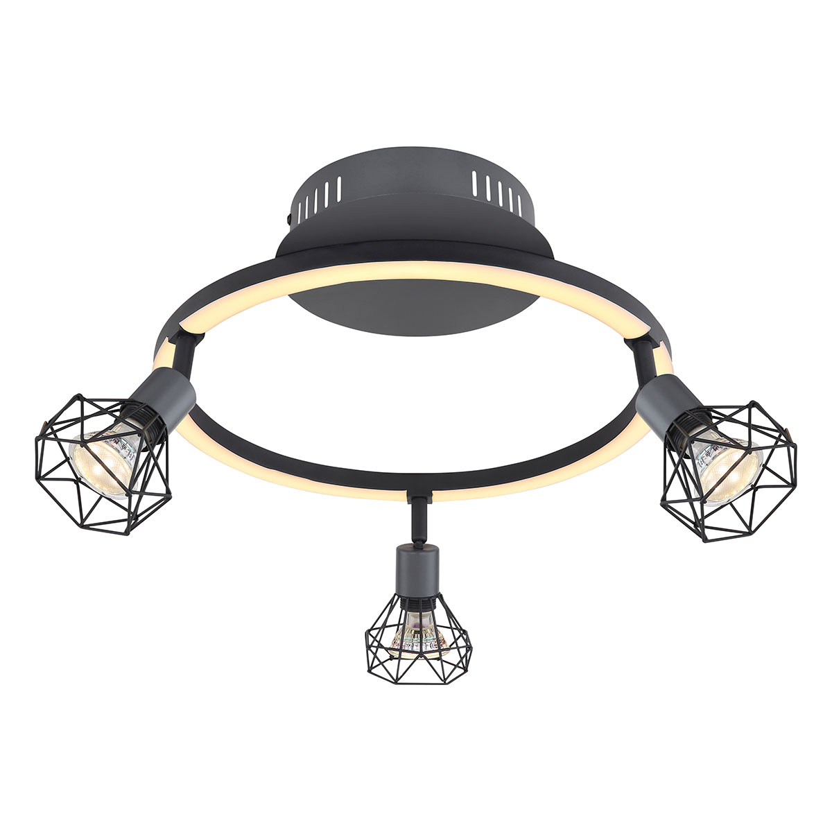 Verschönern Sie Ihren Wohnraum mit diesem stilvollen Jutta-Serie Deckenstrahler. Mit seinem raffinierten Design aus einem schwarzen Metallring, opalem Kunststoff und drei einzigartigen Graphitrahmen mit Metallgitterverkleidung verleiht er jeder Umgebung einen eleganten Glanz. Er bietet die Flexibilität, selbst zu wählen, welche LED-Lampen Sie verwenden möchten, wobei die Lichtausbeute bis zu 460 Lumen betragen kann und eine warmweiße Lichtfarbe von 3000 Kelvin liefert. Kombinieren Sie ihn mit anderen Artikeln aus der Jutta-Serie für ein vollständig abgestimmtes, elegantes Interieur.