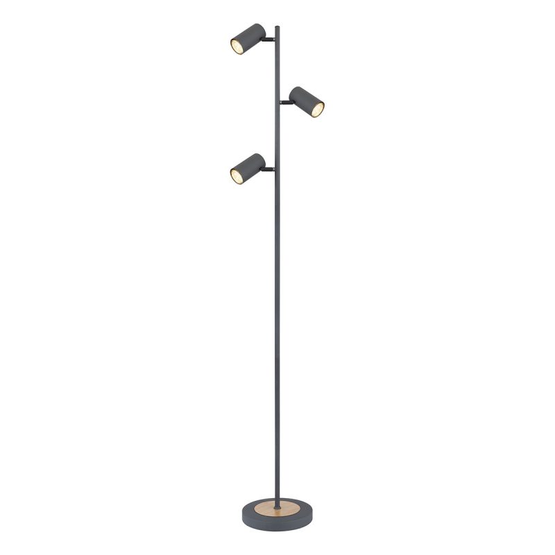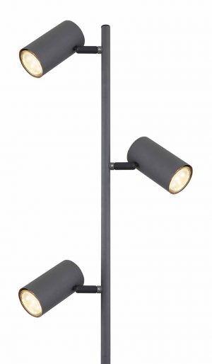 Präsentieren Sie Ihr Interieur stilvoll mit dieser eleganten Stehlampe aus der Robby-Kollektion, mit einer Höhe von 154 cm. Sie zeichnet sich durch eine stilvolle grafitfarbene Metallkonstruktion mit einem Holzlook-Rundfuß und einem dreifach drehbaren Stab mit metallummantelten GU10-Fassungen aus. Gestalten Sie Ihr Beleuchtungserlebnis persönlich, indem Sie Ihre eigenen LED-Lampen auswählen, was Ihnen die Freiheit gibt, die Lichtfarbe und -stärke anzupassen. Einfach zu bedienen mit einem separaten Ein/Aus-Schalter, kombiniert diese Lampe wunderbar mit anderen Artikeln aus derselben Serie, um einen harmonischen Look in Ihrem Zuhause zu schaffen.
