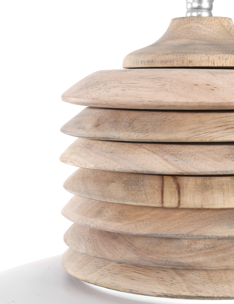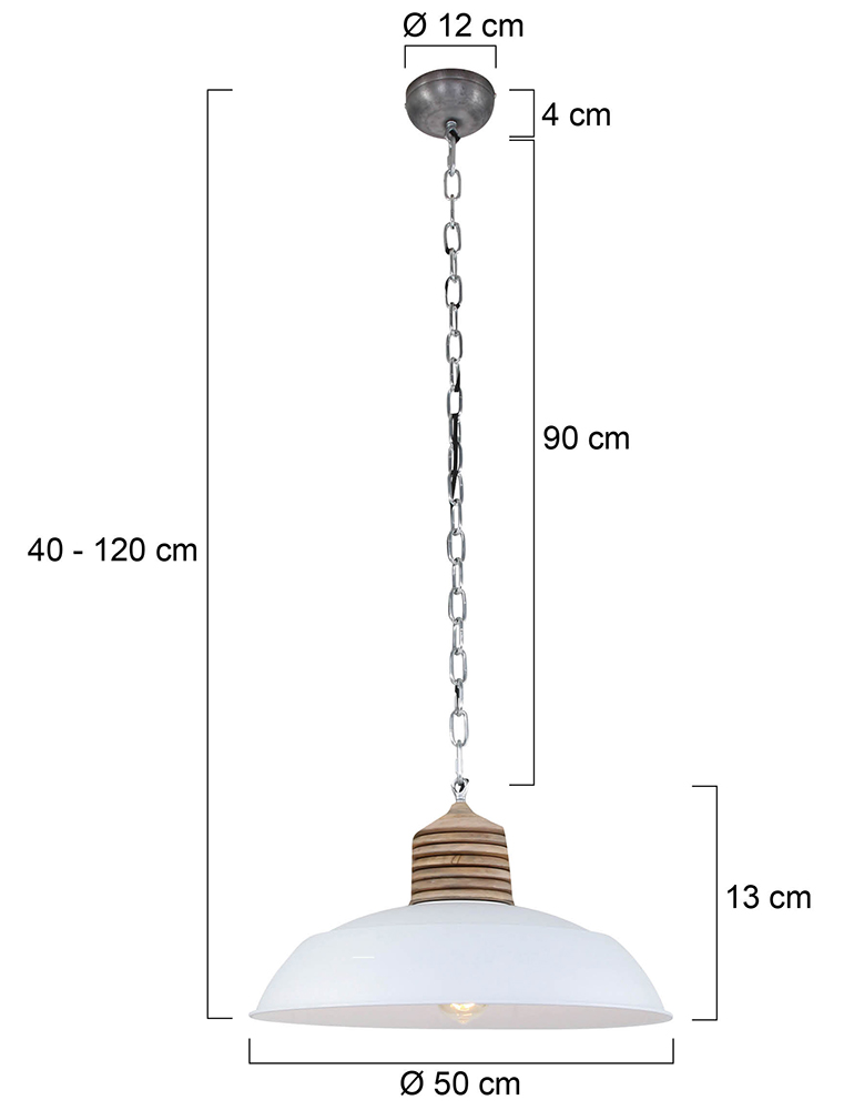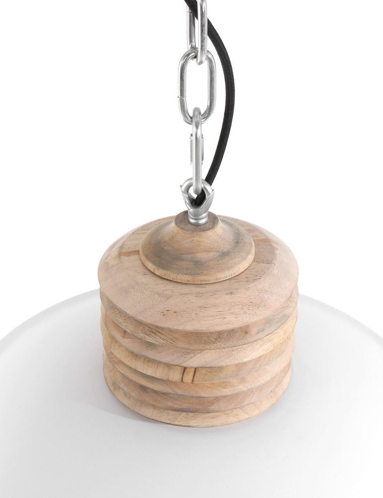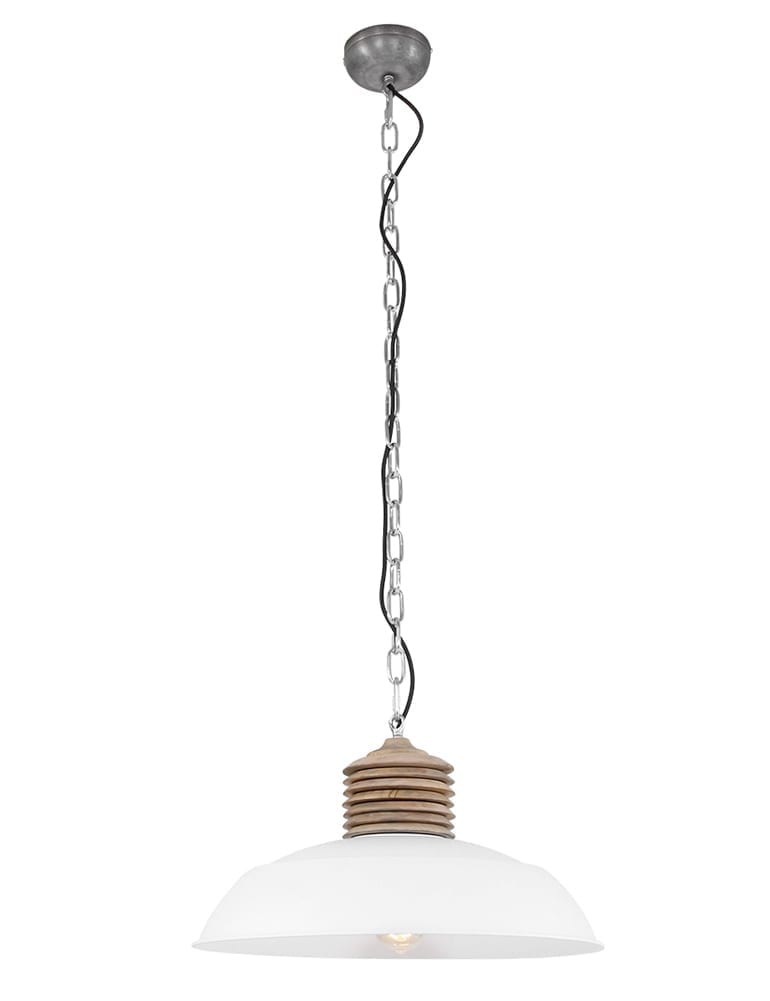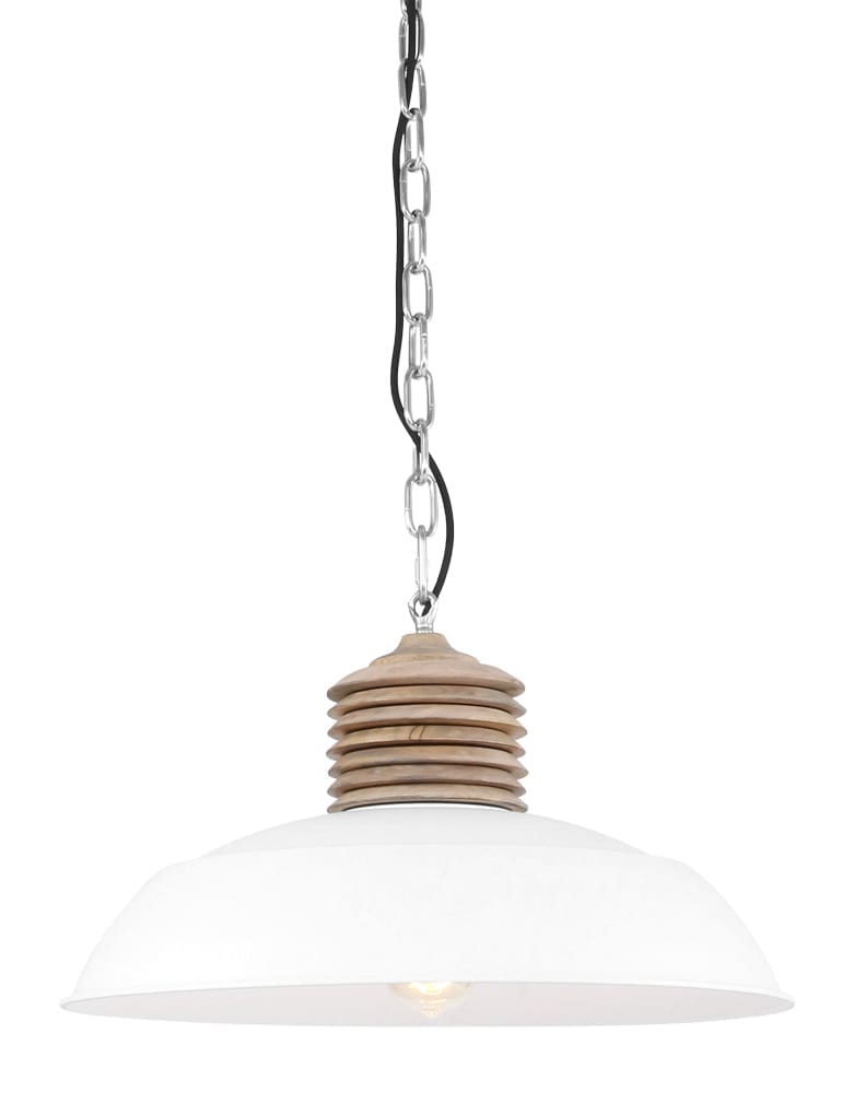 Suchst du nach einer schönen Lampe für über deinem Esstisch und liebst natürliche Akzente? Dann schau dir diese große weiße Hängeleuchte mit Holz von Mexlite an. Diese Hängeleuchte hat einen runden Lampenschirm aus hochwertig weiß lackiertem Metall. Oben befinden sich einige umgekehrte ‘Schälchen’ aus Holz. Darin ist das Aufhängemechanismus geschickt verborgen. Die robuste Metallkette verleiht dieser Hängeleuchte einen zusätzlichen coolen Charakter. Eine schöne Lampe, die durch die Holzelemente deinem Interieur einen skandinavischen Touch verleiht.