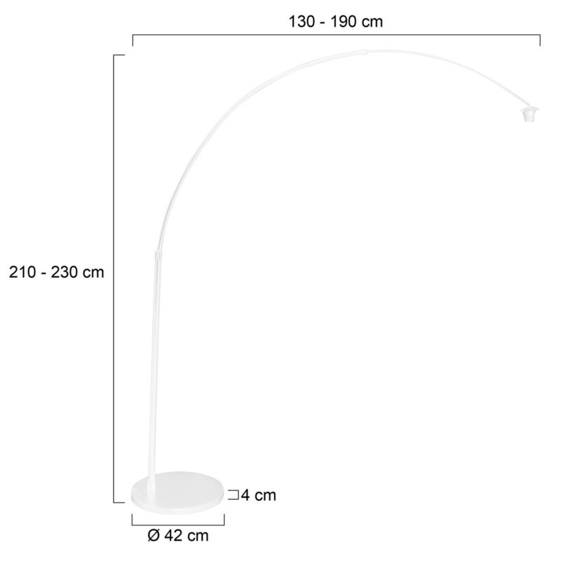 Die große weiße Bogenlampe aus der Sparkled Light-Serie von Steinhauer ist ein vielseitiges Leuchtmittel, das sich mühelos an verschiedene Einrichtungsstile anpasst. Dank des schlanken Metallrahmens und der zeitlosen weißen Ausführung ist diese Lampe ein subtiler Blickfang. Die höhenverstellbare E27-Fassung bietet Platz für Lichtquellen bis zu 40 Watt, und mit einer maximalen Höhe von 240 cm und einer ausziehbaren Länge von 210 cm ist die Lampe flexibel einsetzbar. Das 250 cm lange Kabel mit Fußschalter ermöglicht ein einfaches Schalten. Wird ohne Schirm geliefert, sodass Sie selbst ein stilvolles Exemplar wählen können, das zu Ihrem Interieur passt.