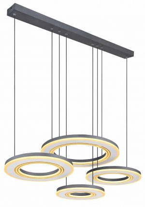 Fügen Sie Ihrer Wohnumgebung mit der Blasius Hängeleuchte im modernen Design einen stilvollen Akzent hinzu. Diese einzigartige Deckenleuchte, in Schwarz- und Weißtönen ausgeführt, besteht aus vier unterschiedlich geformten Metallringen, die von einem Set LED-Lampen mit einer Leistung von 2765 Lumen beleuchtet werden. Besonders bemerkenswert ist die Möglichkeit, die Lichtwärme von warmem zu kühlem Weiß (2700-6000 Kelvin) zu regeln, sowie dimmbare Optionen und eine Nachtlichtfunktion, die alle über eine praktische Fernbedienung zugänglich sind. Die Aufhänghöhe kann während der Montage bis zu 120 cm eingestellt werden, und andere Modelle aus der Blasius-Serie können nahtlos integriert werden, um ein harmonisches Gesamtbild in jedem Raum zu schaffen.