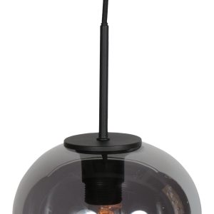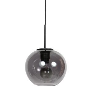 <pDiese schwarze Pendelleuchte ist mit einem eleganten, kugelförmigen Schirm aus rauchfarbenem Glas mit einem Durchmesser von 20 cm und einer Höhe von 16,6 cm ausgestattet. Das warme, getönte Glas verteilt das Licht auf subtile Weise und schafft sofort eine gemütliche Atmosphäre. Perfekt als stilvolle Ergänzung über einem Esstisch, einer Kochinsel oder einer Bar – sowohl allein als auch in Gruppen.