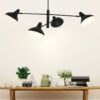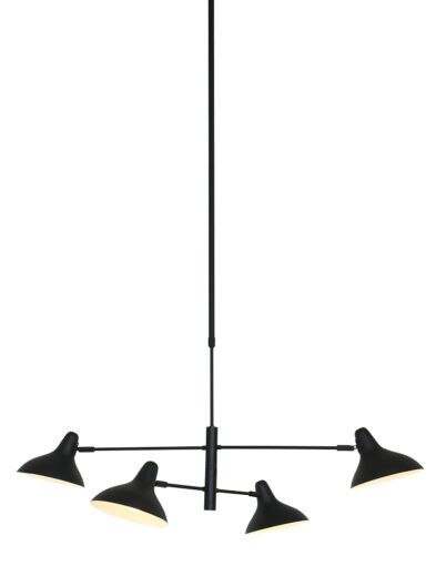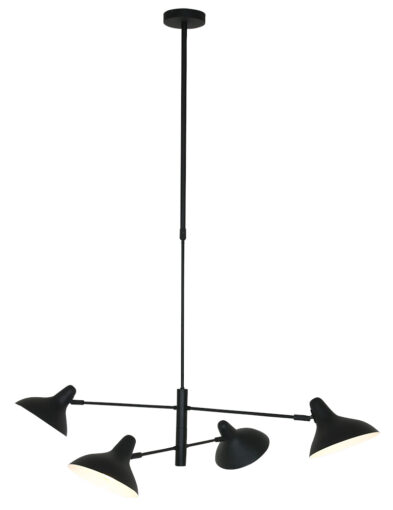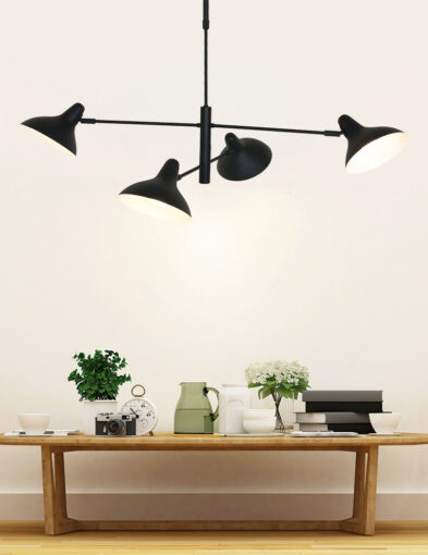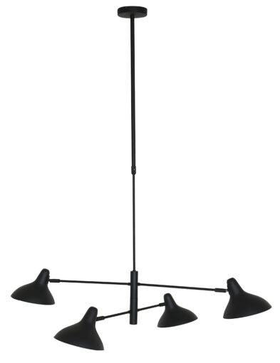 Die Hängeleuchte Kasket fällt durch die aufregende doppelte Kreuzung von drehbaren Stangen übereinander auf. Achten Sie auch auf die vier schön gewölbten, neigbaren Schirme in zwei Höhen! Durch die Flexibilität können Sie das Licht effizient ausrichten und das schwarze Metall-Silhouette variieren. Hängen Sie Kasket über einen langen Tisch oder eine Kochinsel und kombinieren Sie sie mit den passenden Wand-, Tisch- und Stehleuchten.